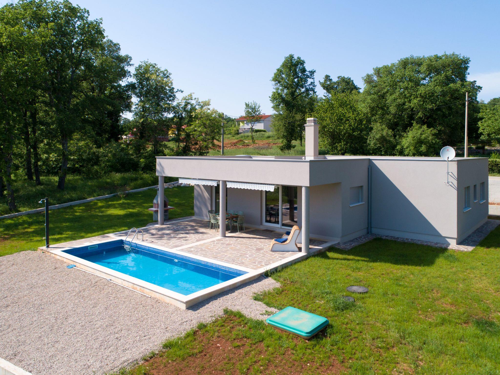 Discover the perfect getaway for your family vacation in this idyllic holiday house bungalow nestled in Becici near Labin, on the stunning east coast of the Istrian peninsula, Croatia. This spacious property can comfortably accommodate up to 6 guest across three beautifully appointed bedrooms, complemented by two full bathrooms and an additional guest toilet. At the heart of the outdoor space is a private pool, 8 meters by 3.5 meters, surrounded by a sun terrace with loungers.