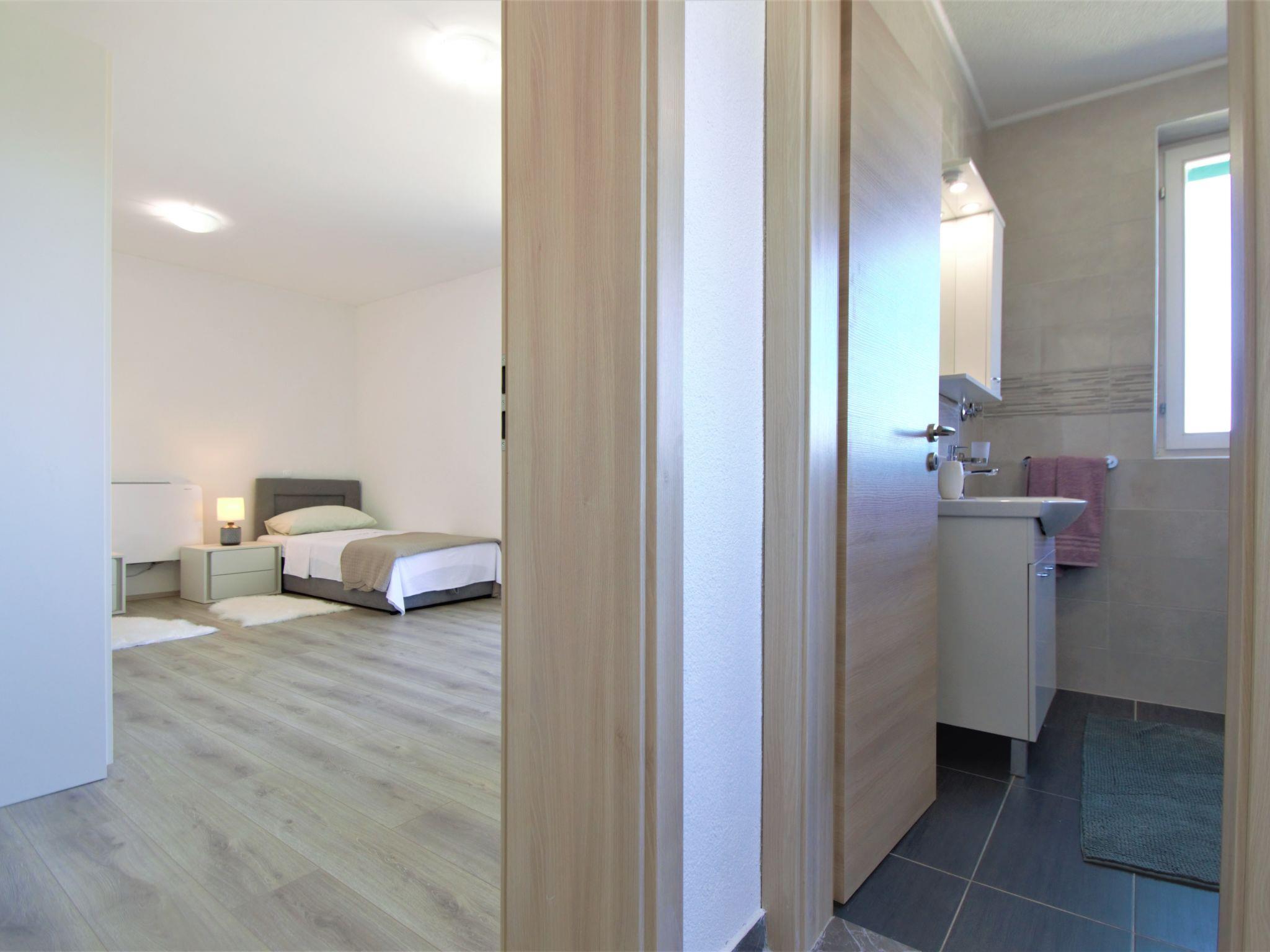 Single-family house "Skelin". In the hamlet Drinovci 13 km from the centre of Drniš, 30 km from the centre of Šibenik, in a quiet, sunny position, 30 km from the sea, in the countryside. Private: property 1'000 m2 (fenced), lawn, swimming pool angular (8 x 5 m, depth 150 cm, seasonal availability: 01.May. - 15.Oct.) with internal staircase. Outdoor shower, terrace (100 m2). In the house: internet access, washing machine. Parking (for 6 cars) at the house on the premises. Shop 9 km, restaurant 10 m, bus stop 15.1 km, pebble beach 30 km, public bathing area 30 km. Nearby attractions: NP Krka 10 km.