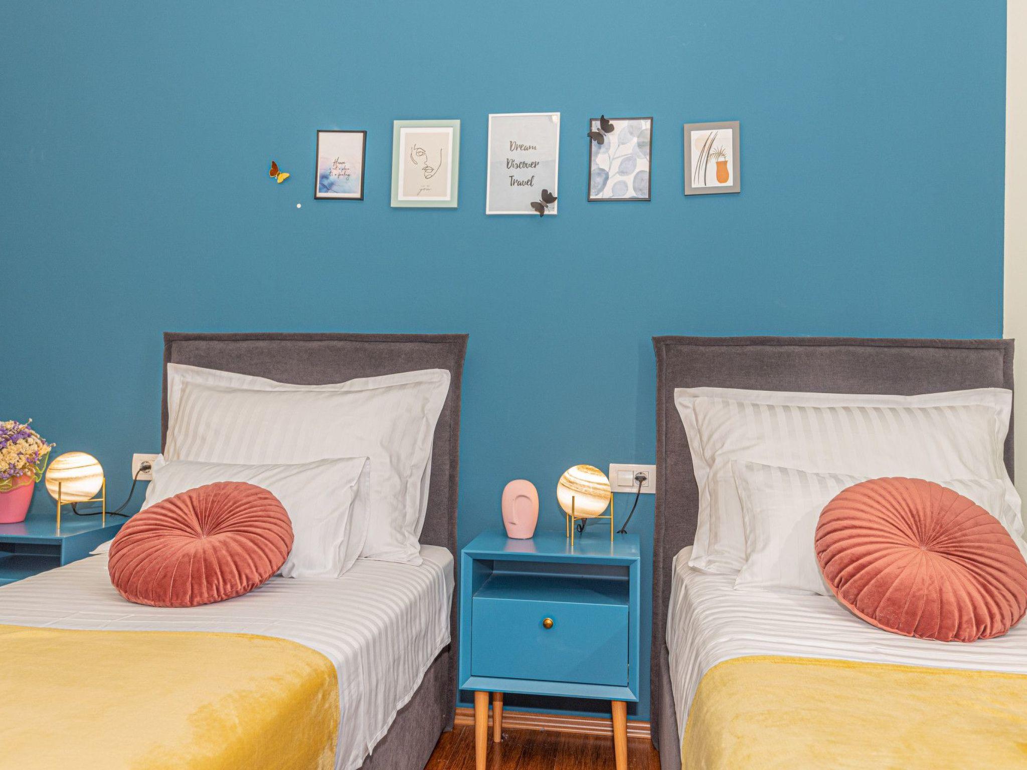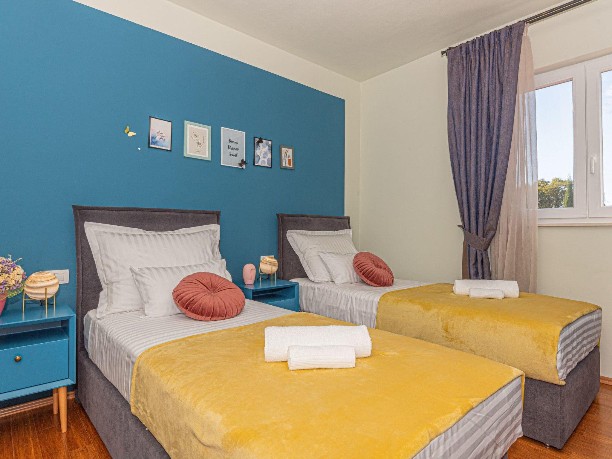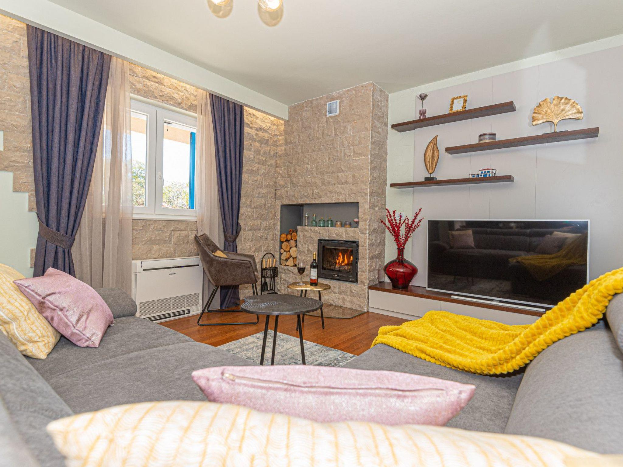 Villa Romansa can accommodate up to 9 guests, there are 5 bedrooms, 3 of them with double beds, and 2 bedrooms with single beds. On the ground floor of the villa, there is a spacious fully equipped kitchen, which is connected to a dining area. The cozy living room will offer you perfect relaxation by the fireplace.