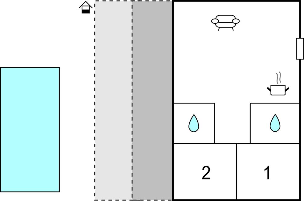 Opholdsstue/køkken - 2 Sovepladser. (Sofa, madras eller lignende).