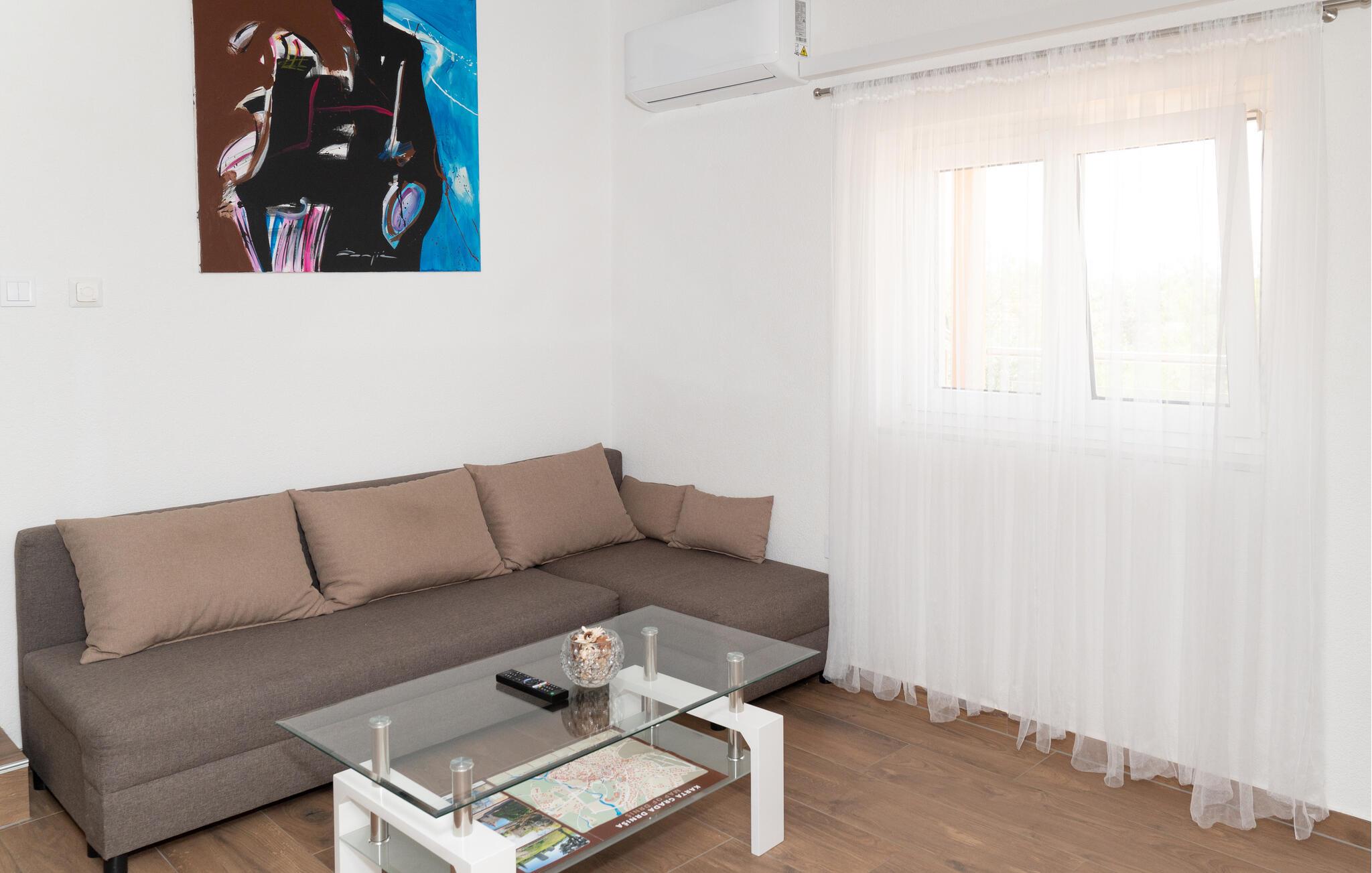 Lad hverdagen bag jer, og nyd ro, natur og komfort midt i det idylliske kroatiske landskab. Tilbered jeres yndlingsretter i det fuldt udstyrede køkken, og nyd måltiderne ved det stilfulde spisebord. Tilbring afslappende aftener i den hyggelige stue med en god serie eller et sjovt brætspil. De rummelige og lyse værelser skaber den perfekte ramme for afslapning og velvære.