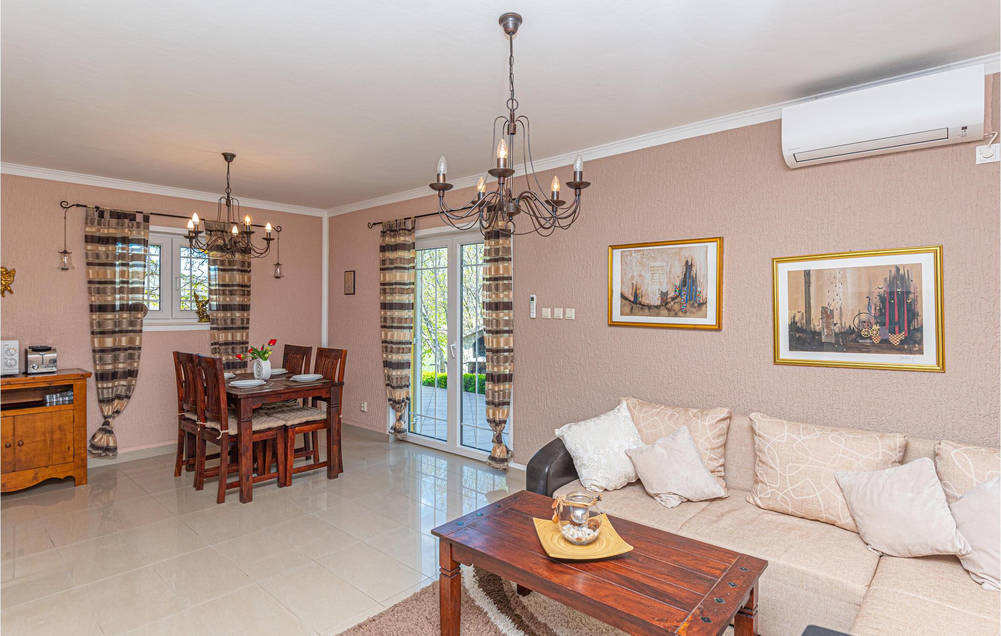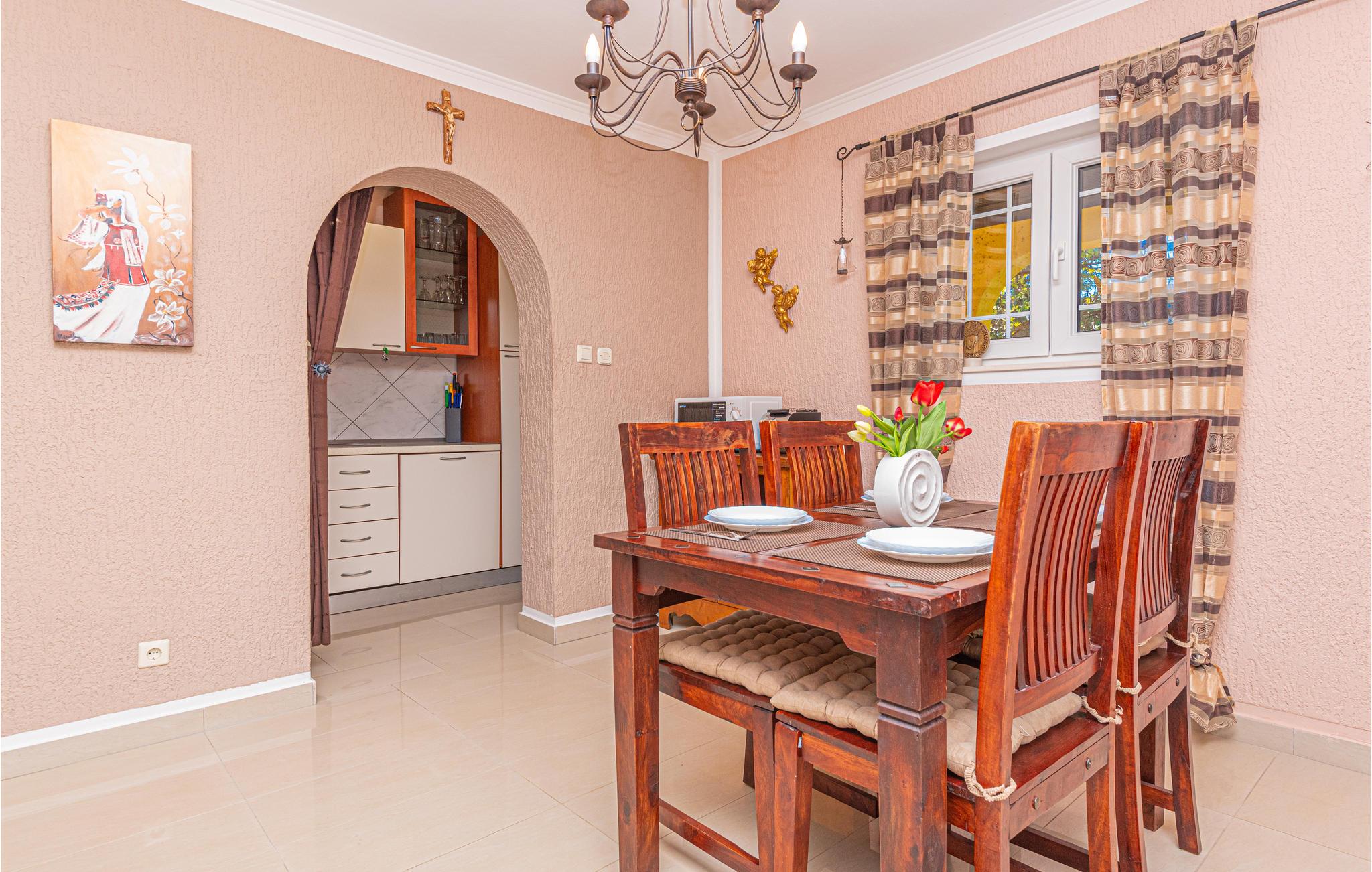 Dette smukt indrettede feriehus ligger i nærheden af byen Drniš, i den lille landsby Kijevo. På grunden er der en pool, hvor I finder forfriskning på varme sommerdage. I har også en grill til rådighed på grunden. Gå på opdagelse i området rundt om Kiew og nyd den skønne natur i det dalmatinske bagland. Besøg også byen Vrlika, som byder mange attraktioner: Fort Prozor, Lelas vindmøller, Balecki-broen og kilden af floden Cetina, der ligger i Civljane, kun få kilometer fra byen Vrlika.