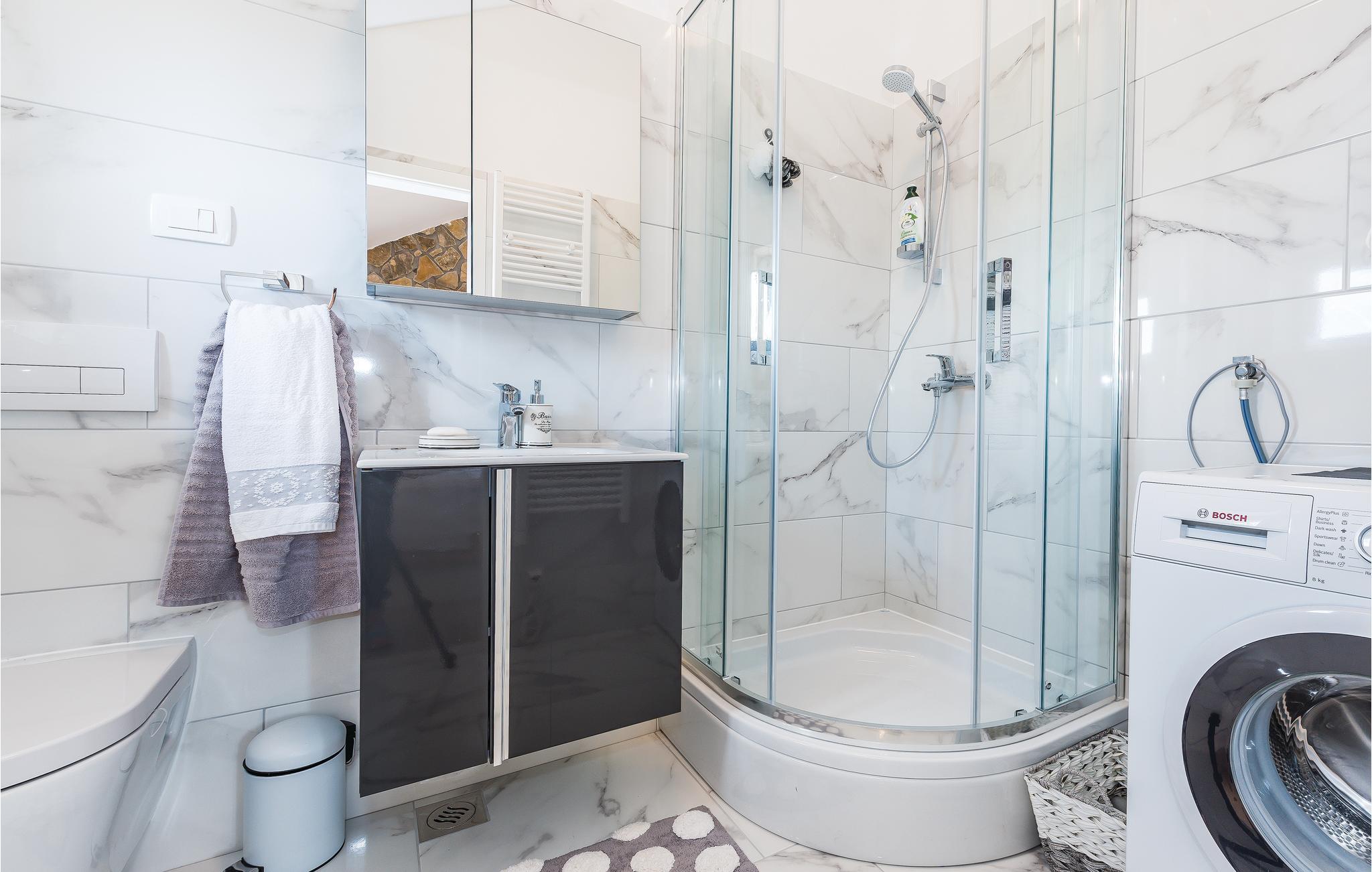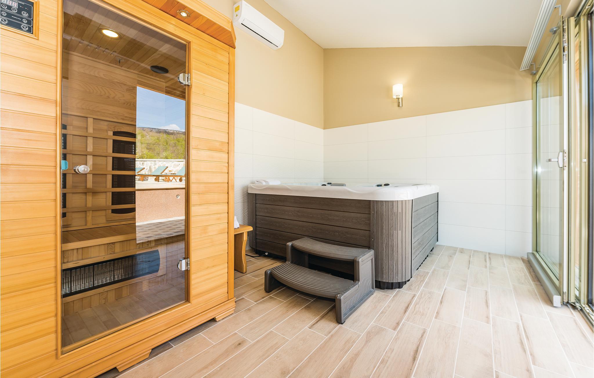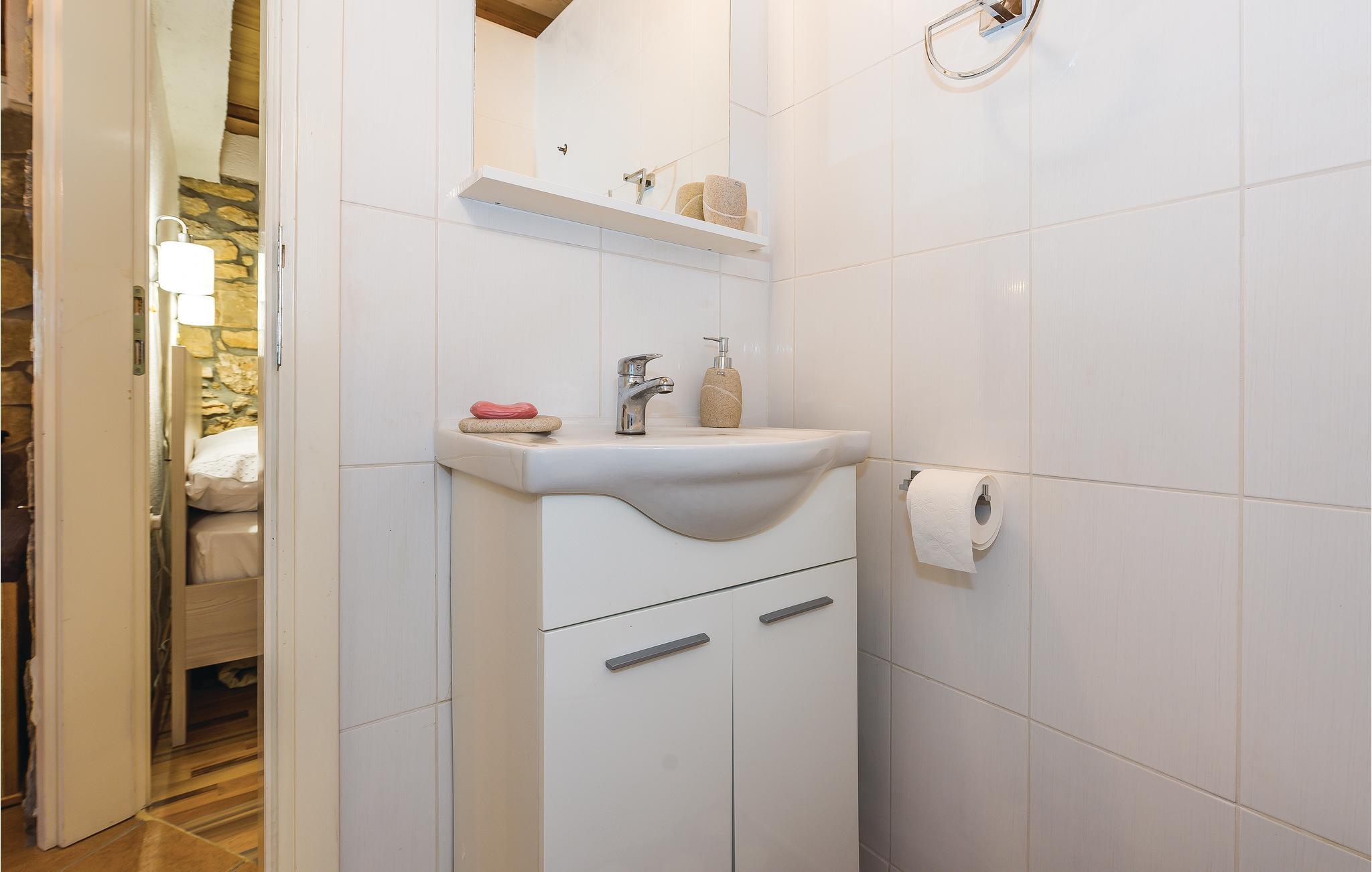 Dette feriehus ligger på en 1300 m² stor grund og består af to bygninger, hvor der i hovedhusets stueplan er stue, to soveværelser, to badeværelser og stejle trapper af træ, der fører op til hemsen. Her ligger husets tredje soveværelse med en minimums lofthøjde på ca. 60 cm i siden (skrå vægge), mens der i den tilstødende bygning er et køkken, badeværelse og et værelse med sauna og whirlpool. Udendørs i haven står en grill, hvor I kan lave lækre måltider. Benyt den gode belligenhed og besøg den nærliggende Krka Nationalpark eller nationalparkerne Plitvicesøerne, Kornatiøerne, Paklenica og Nordvelebit. Inden for 25 km ligger byerne Vodice og Šibenik og kroatiens største vandfald: Manojlovac. Der er restauranter og butikker i byen Drniš, samt arkæologiske ruiner efter tyrkiske bygninger, hvis herredømme de gamle moskeer og en fæstning stadig bærer vidne om. Regionens gastronomiske specialiteter er skinke, ost, svampe, vine og desuden skal I smage de traditionelle retter på en af de mange restauranter.