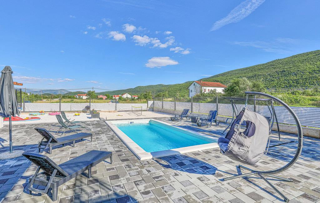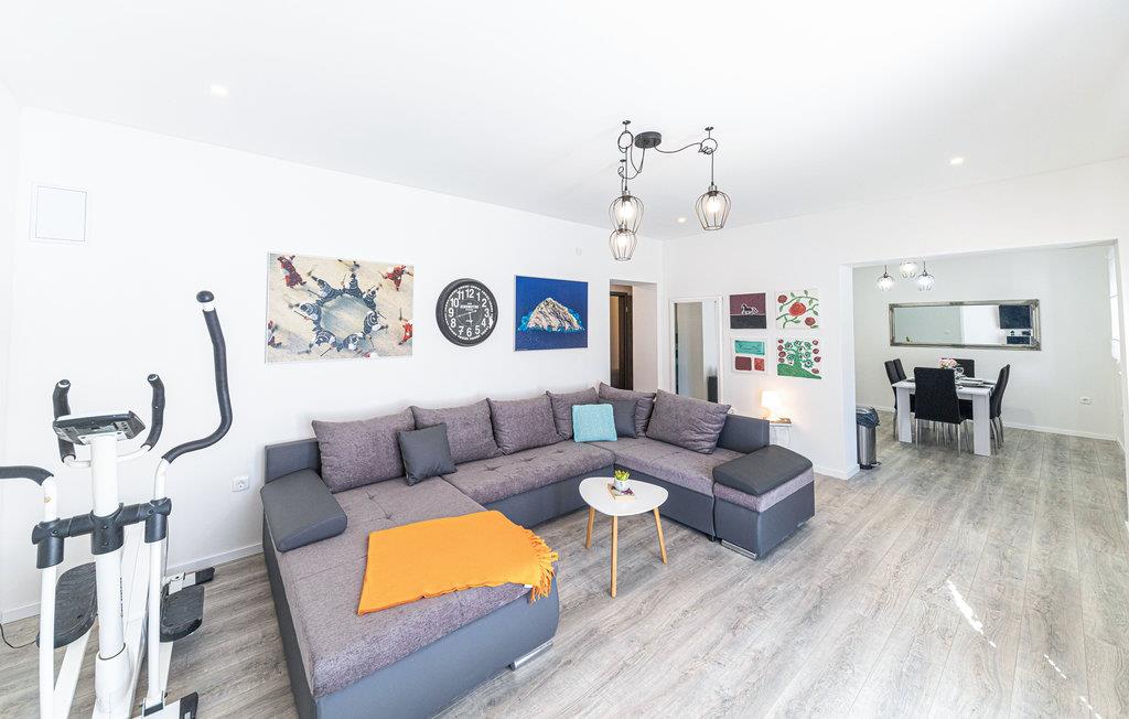 Huset venter på jer i det dalmatiske bagland i Drnis og er ideelt for gæster, der ønsker absolut fred og ro i skøn natur. Der er udvendige trapper mellem etagerne. Huset er moderne og komfortabelt indrettet og er udstyret med alt I behøver for at få en vellykket ferie. Der er 6 soveværelser og 4 badeværelser til jeres rådighed. 2 kæledyr er også velkomne i sommerhuset. Takket være aircondition er der behagelige stuetemperaturer selv om sommeren.
