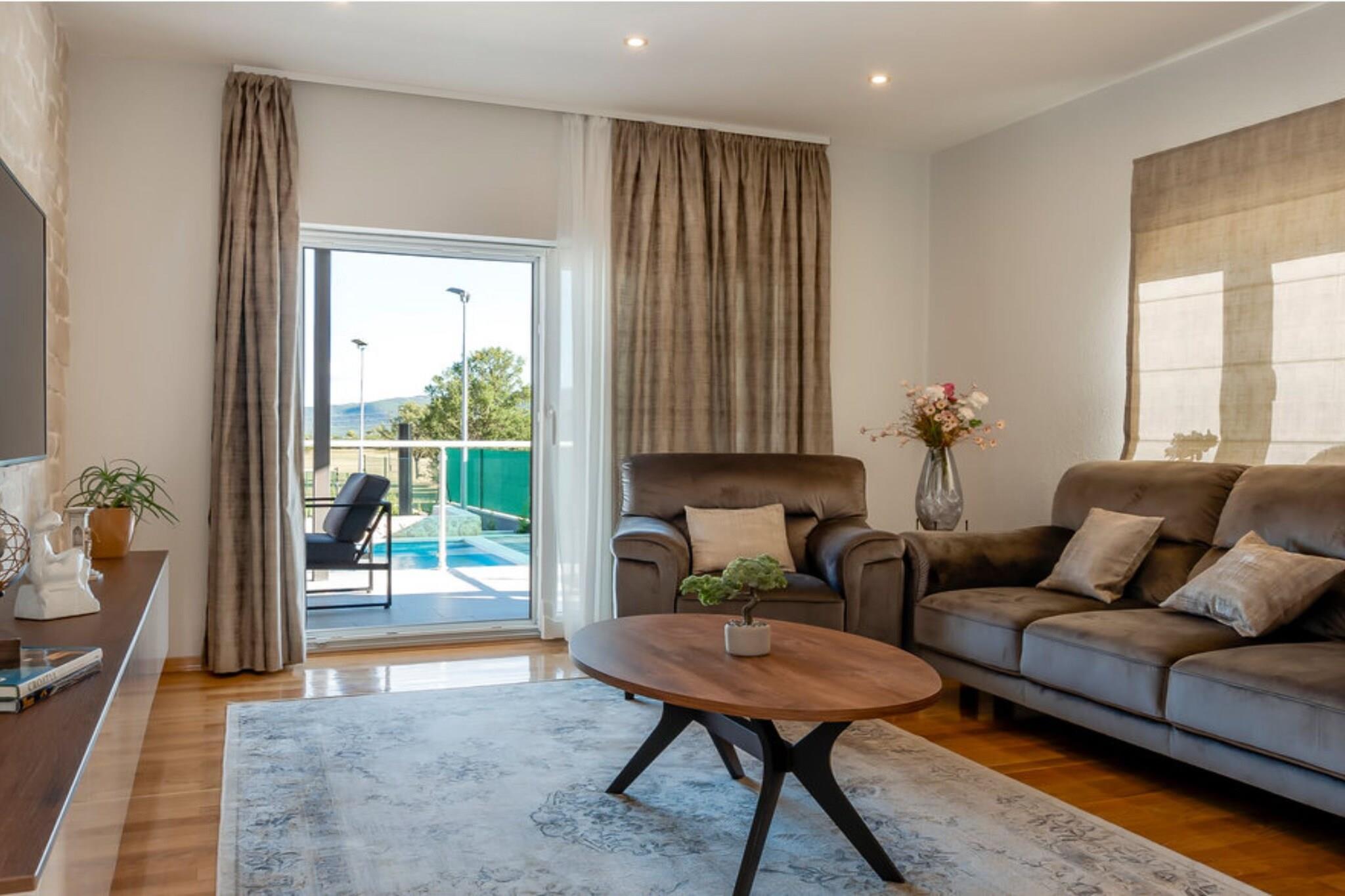 ?Villa Branka in Drniš, Šibenik-Knin County, Croatia, is a serene countryside retreat offering modern amenities amidst natural beauty. Guests have praised Villa Branka for its cleanliness, comfort, and tranquil setting. The property's proximity to natural attractions and the hospitality of the hosts are frequently highlighted. Note: Private parking is available, and a reservation is not required. A baby cot is available on request. Wi-Fi is available throughout the property. Pets are allowed. This five-bedroom can accommodate up to ten guests. It features a satellite TV and is combined with a sofa. The private bathroom is equipped with a shower and toilet. Thanks to its excellent location, everything you'll need for your vacation is just a short walk from the property. Grocery stores, cafes, restaurants—everything is within a 1.00 km radius. The airport is 60 km away from the property.
