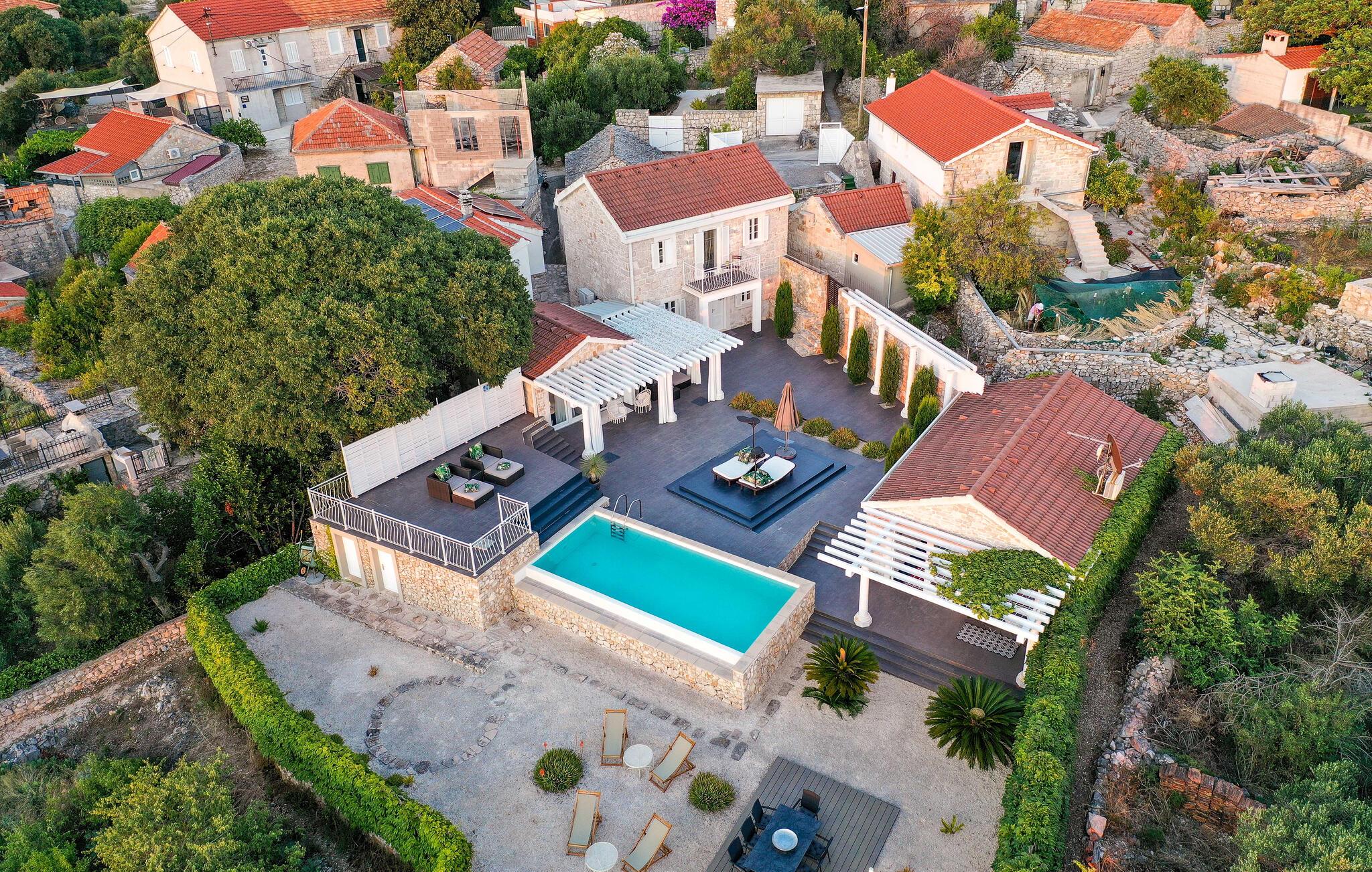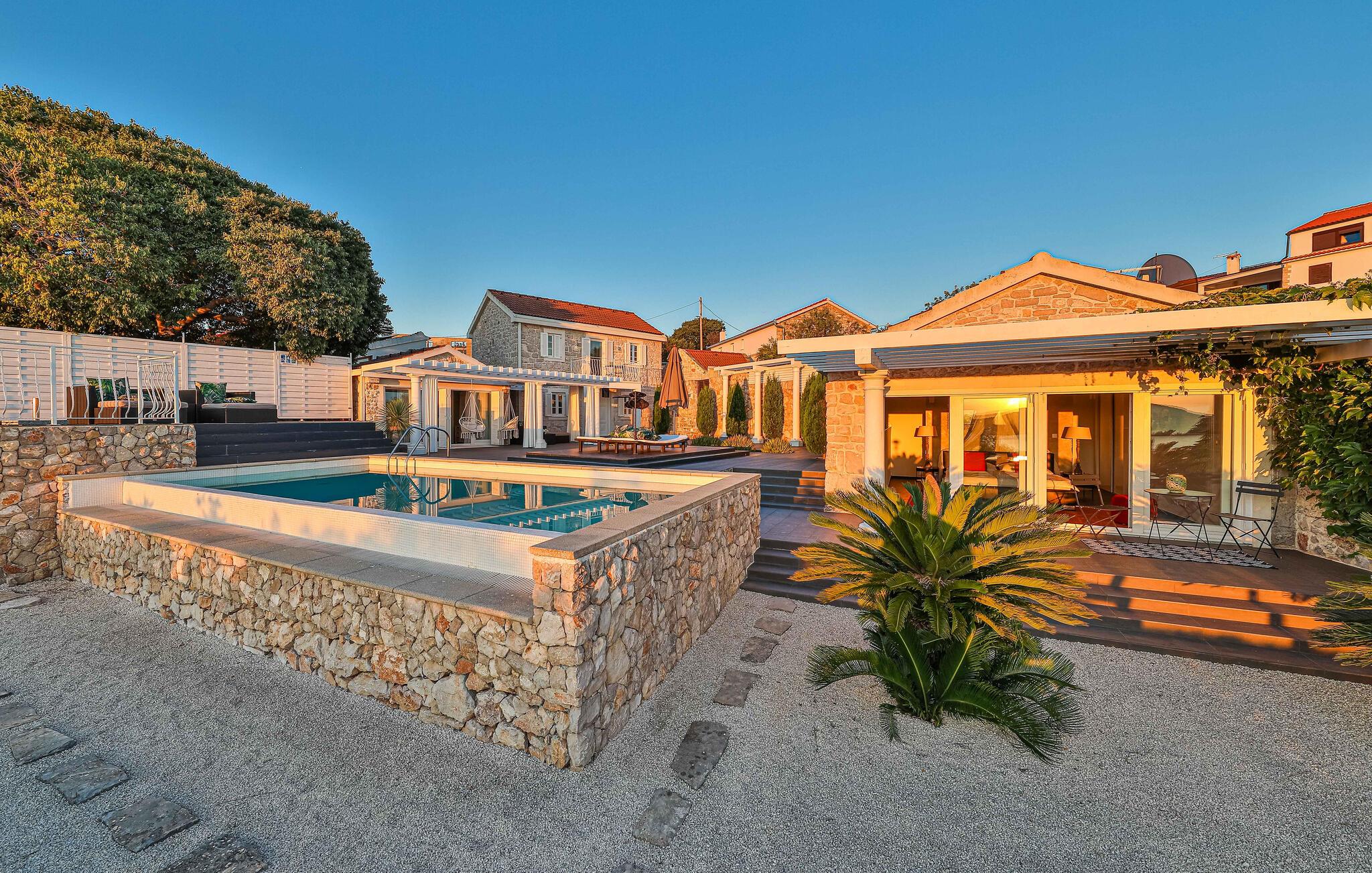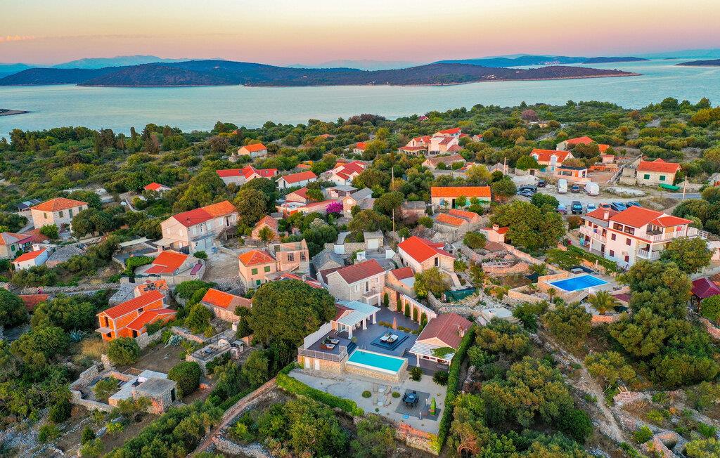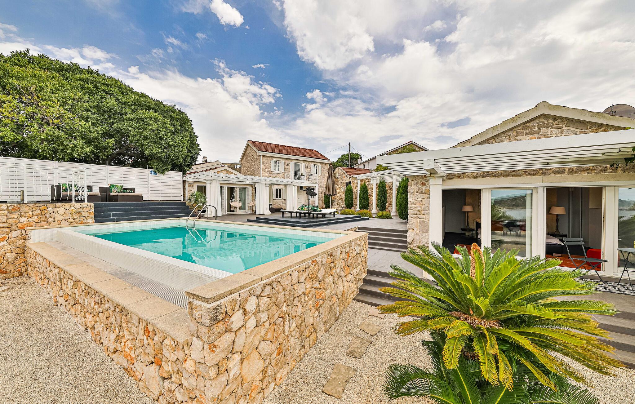 Smuk stenvilla med panoramaudsigt over havet og privat pool på den dejlige ø Drvenik Mali.