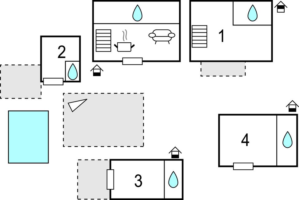 Badeværelse 4m2 (nr. 1) - WC. Varmt og koldt vand. Bruser