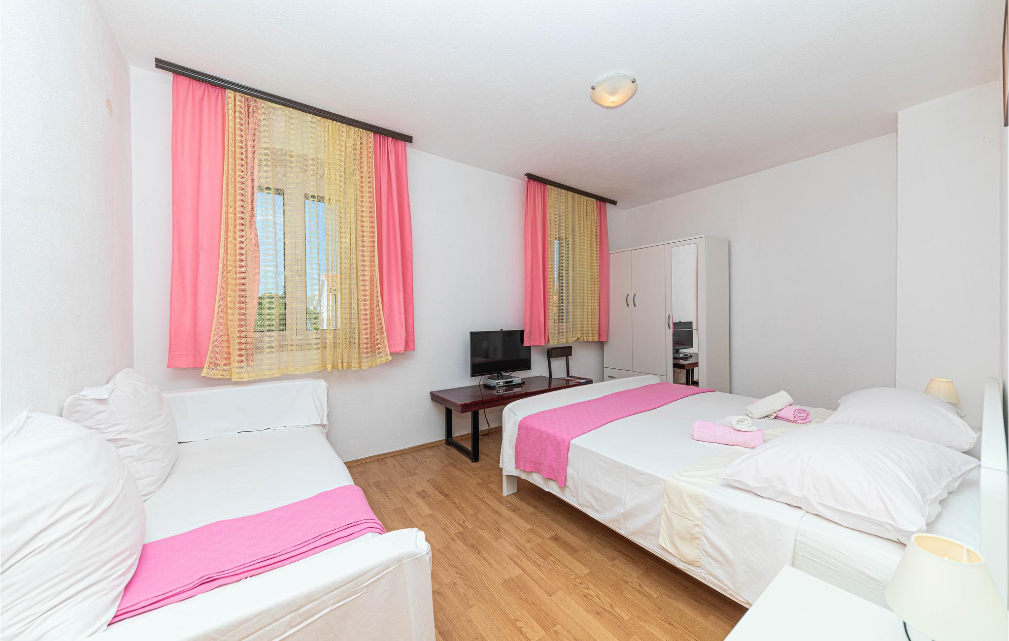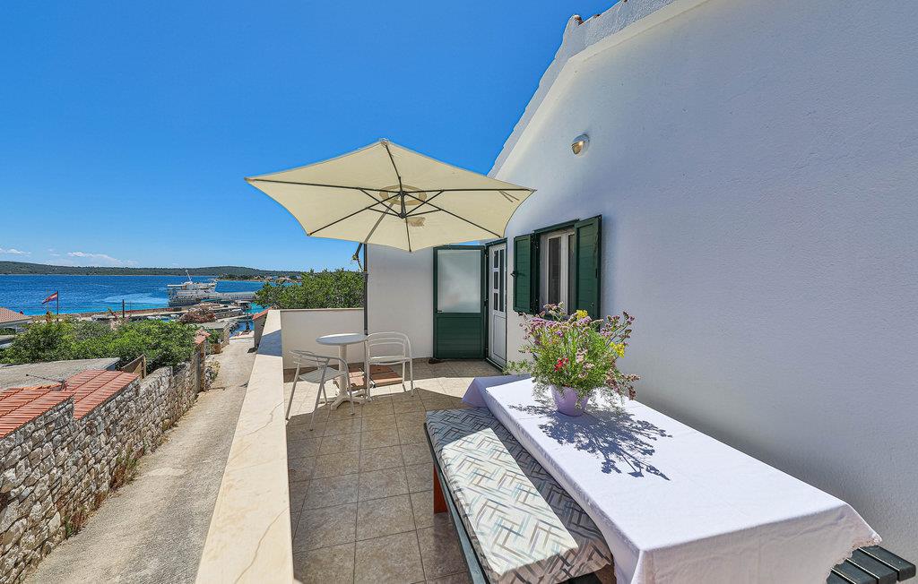 Denne enkelt indrettede ferielejlighed på første sal byder på en stor terrasse med panoramaudsigt over havet. Drvenik Mali er en ø i nærheden af Trogir og er oplagt, hvis I ønsker en afslappet ferie. I højsæsonen forbinder en færge dagligt øen med fastlandet (billetter erhverves i Trogir - kontakt udlejer på forhånd, så kan han sørge for færgebilletter).