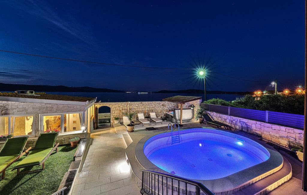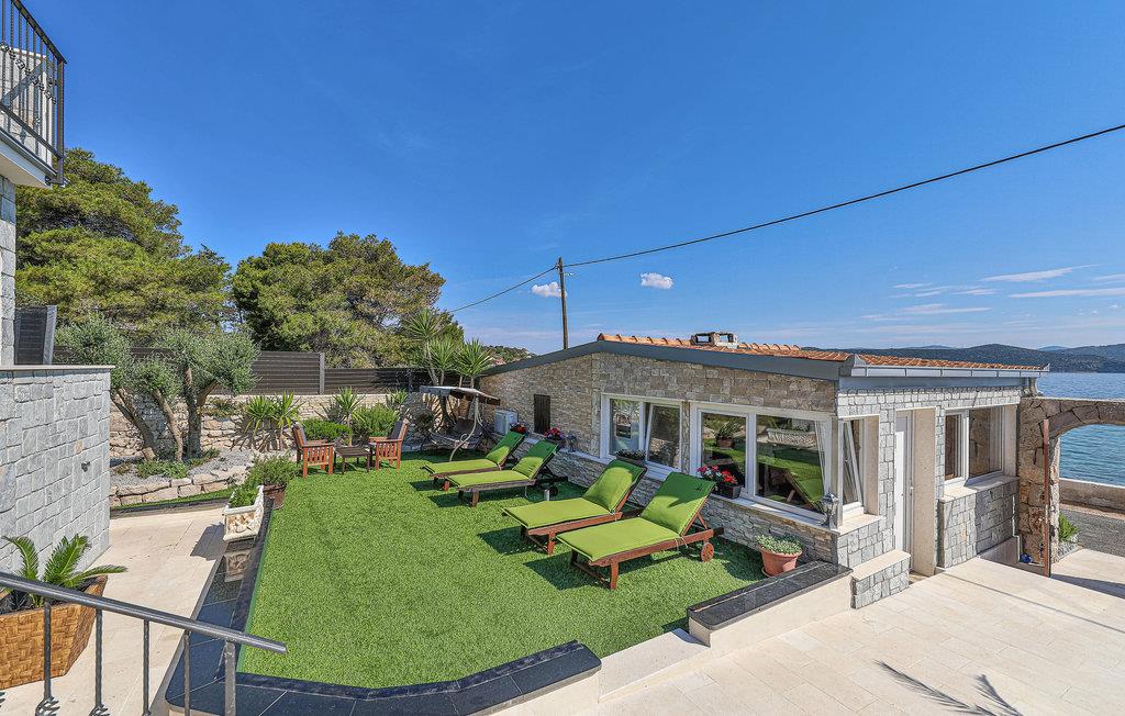 Dette fantastiske feriehus ligger på den lille ø Drvenik Mali nær Trogir. Den store grund er velplejet, fuldstændigt indhegnet og helt ideel til jeres firbenede ven, hunden.