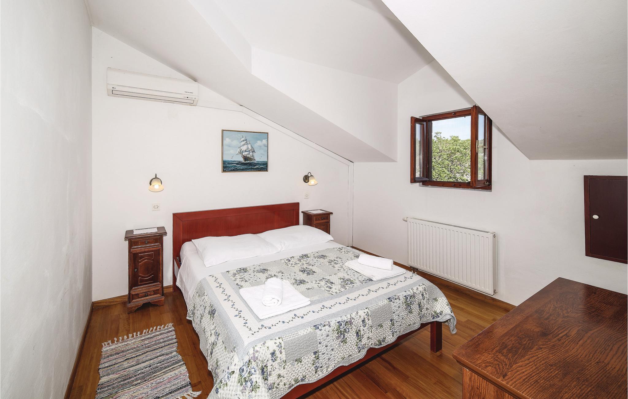 Nyd idyllen på den maleriske ø Mali Drvenik og det krystal klare hav der indbyder til sjov, dykke- og svømmeture. På øen er der uberørt mediterran natur, med skønne sandstrande og små hemmelige bugter, der kun kan nås i båd eller til fods. På øen ligger dette rummelig hus af sten, med god plads til 2-3 familier, der vil holde en uforglemmelig ferie sammen for at opleve det mediterrane klima, den fine natur og kan drage fordel af husets tykke kølige mure. Stue og første sal er forbundet med en indendørs trappe. Hvert soveværelse har eget badeværelse. Fra den rummelige terrasse er der en uforglemmelig udsigt over havet og de nærliggende øer. Her er også en pool med modstrømsanlæg, hvis da ikke I foretrækker havet, der sender sine bølger mod stranden, bare 15 m fra huset. Den skønne kiesstrand ligger 300 m fra huset. Besøg også den historiske by Trogir, der er med på Unescos’ verdensarvsliste og kan nås med båd, på bare 40 min. Her venter mange seværdigheder og underholdning for alle aldersklasser. Den sidste del af vejen op til huset er ad en lille grusvej ikke egnet til lave biler. Mod ekstra betaling, kan I leje en otte meter lang sejlbåd hos husets ejer, samt en gummibåd til seks personer hos husets ejer.