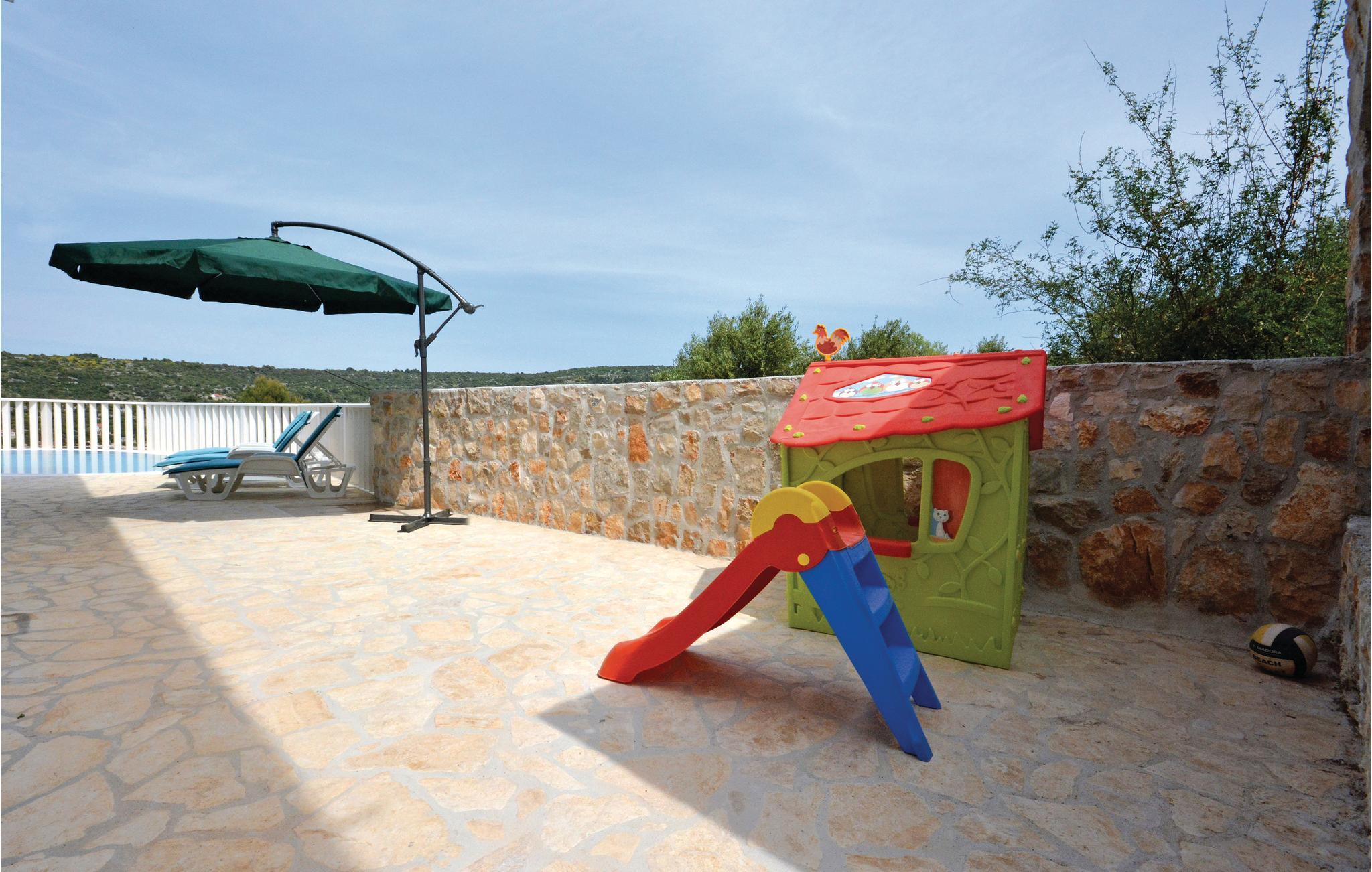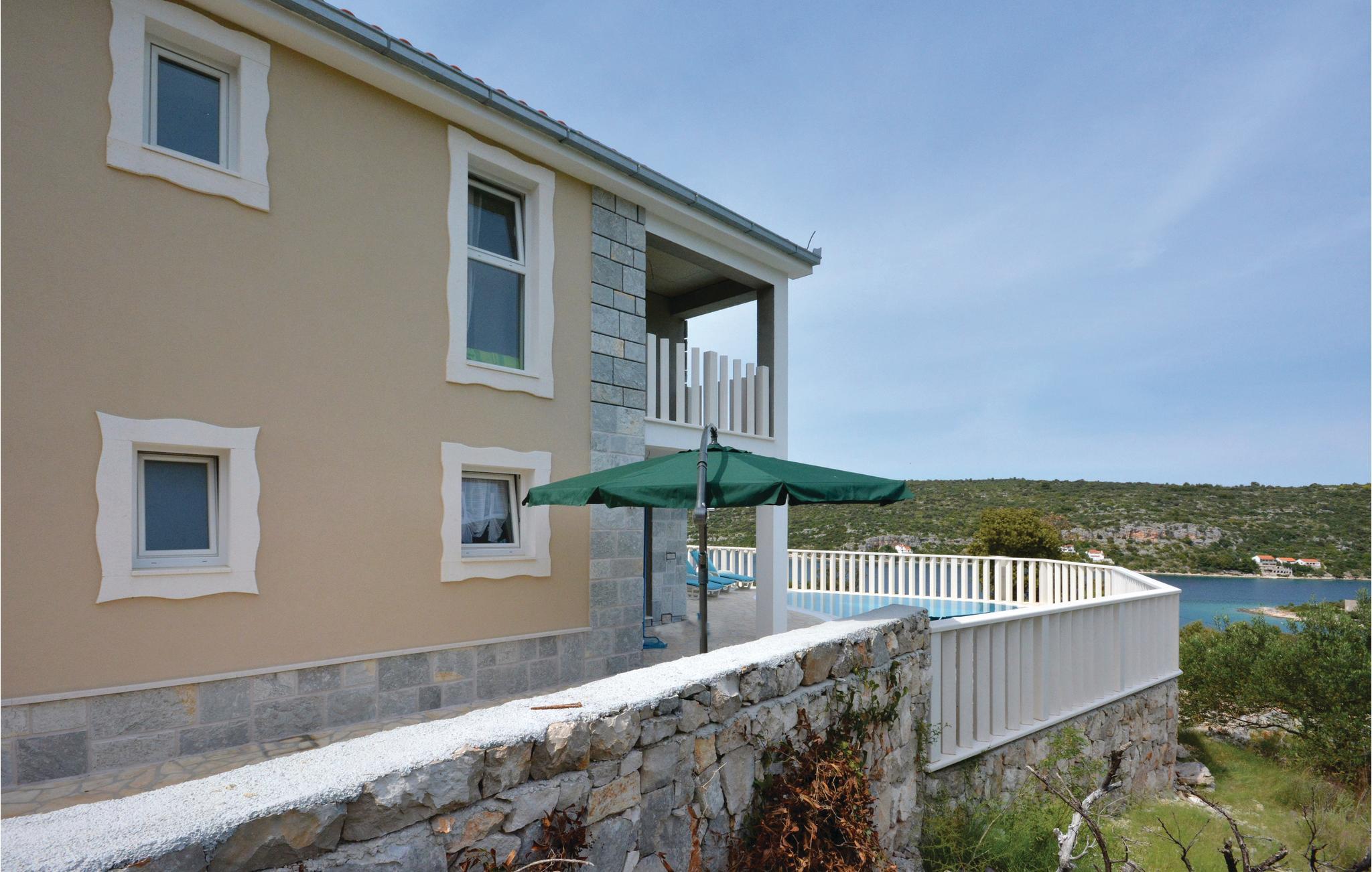 På øen Drvenik Veli ligger dette moderne feriehus med pool. Det er skønt indrettet, rummer fire soveværelser, tre badeværelser, stue med køkken og spiseafdeling. I huset er der også et fitnessrum. På terrassen der omgiver poolen kan i nyde den skønne havudsigt mens jeres børn leger på gyngen og rutsjebanen. På grillen kan I lave alle former for nem og lækker grillmad – glem ikke skumfiduser til dessert.