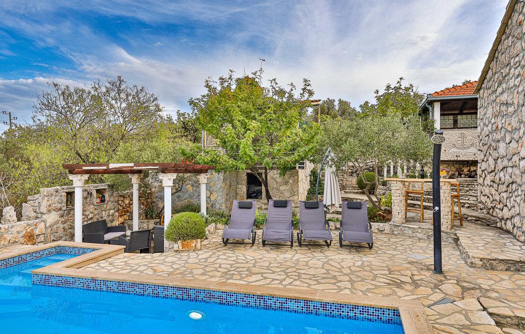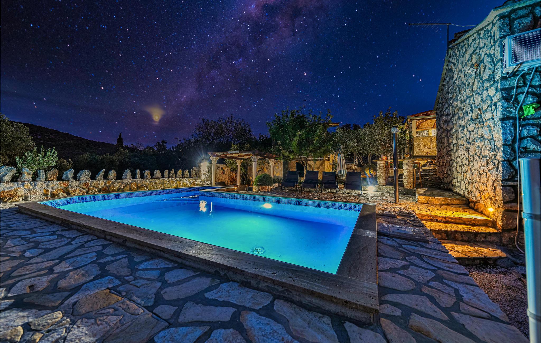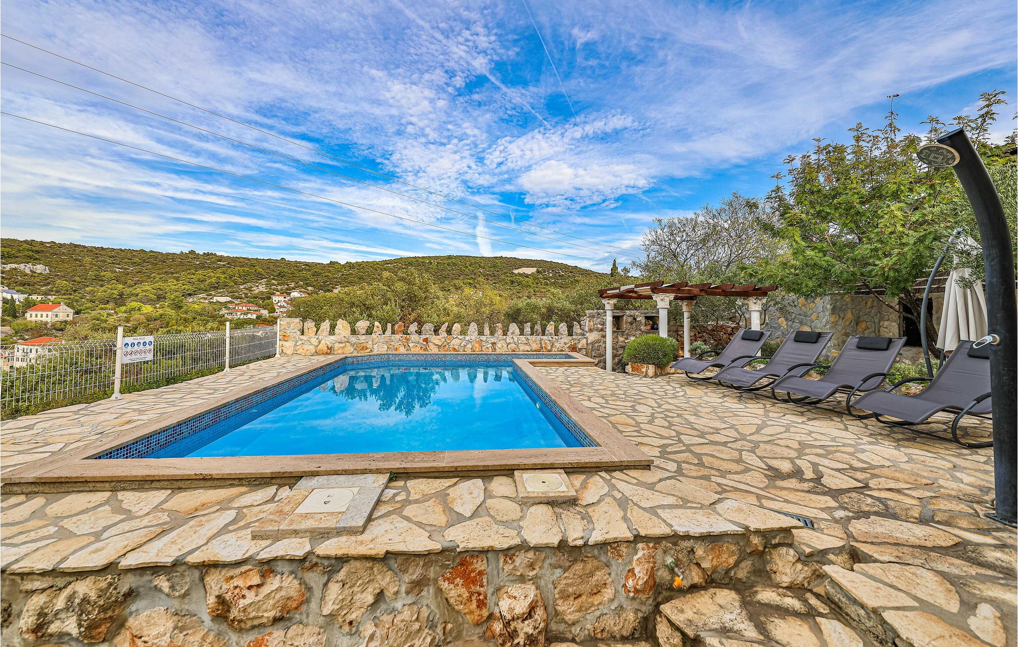 Med en idyllisk beliggenhed på øen Drvenik Veliki, ligger dette feriehus i solrige omgivelser med pool og betagende smuk udsigt over havet. I kan nyde ferien på terrassen med overdækket udendørs køkken og bord og stole – på denne afsides beliggende ø, kan I se frem til de skønneste rammer til dejlige naturoplevelser. Huset er rustikt indrettet og giver plads til et par eller en lille familie. Der er hverken langt til strand, supermarked, posthus eller restaurant. Hold jeres sommerferie på øen Drvenik, nyde den afslappede dalmatiske livsstil og mens maden bliver færdig på grillen og bølgerne slår mod kysten.