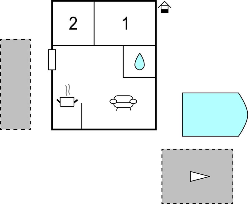 Opholdsstue/køkken - 2 Sovepladser. (Sofa, madras eller lignende).