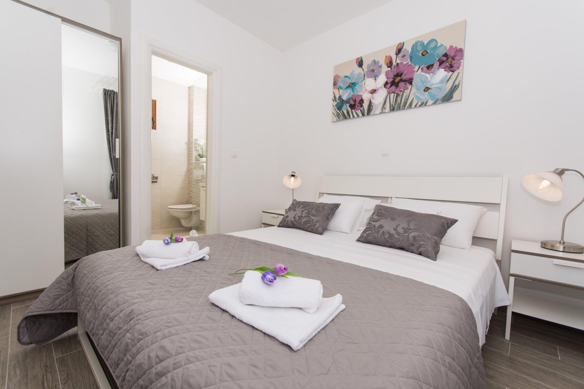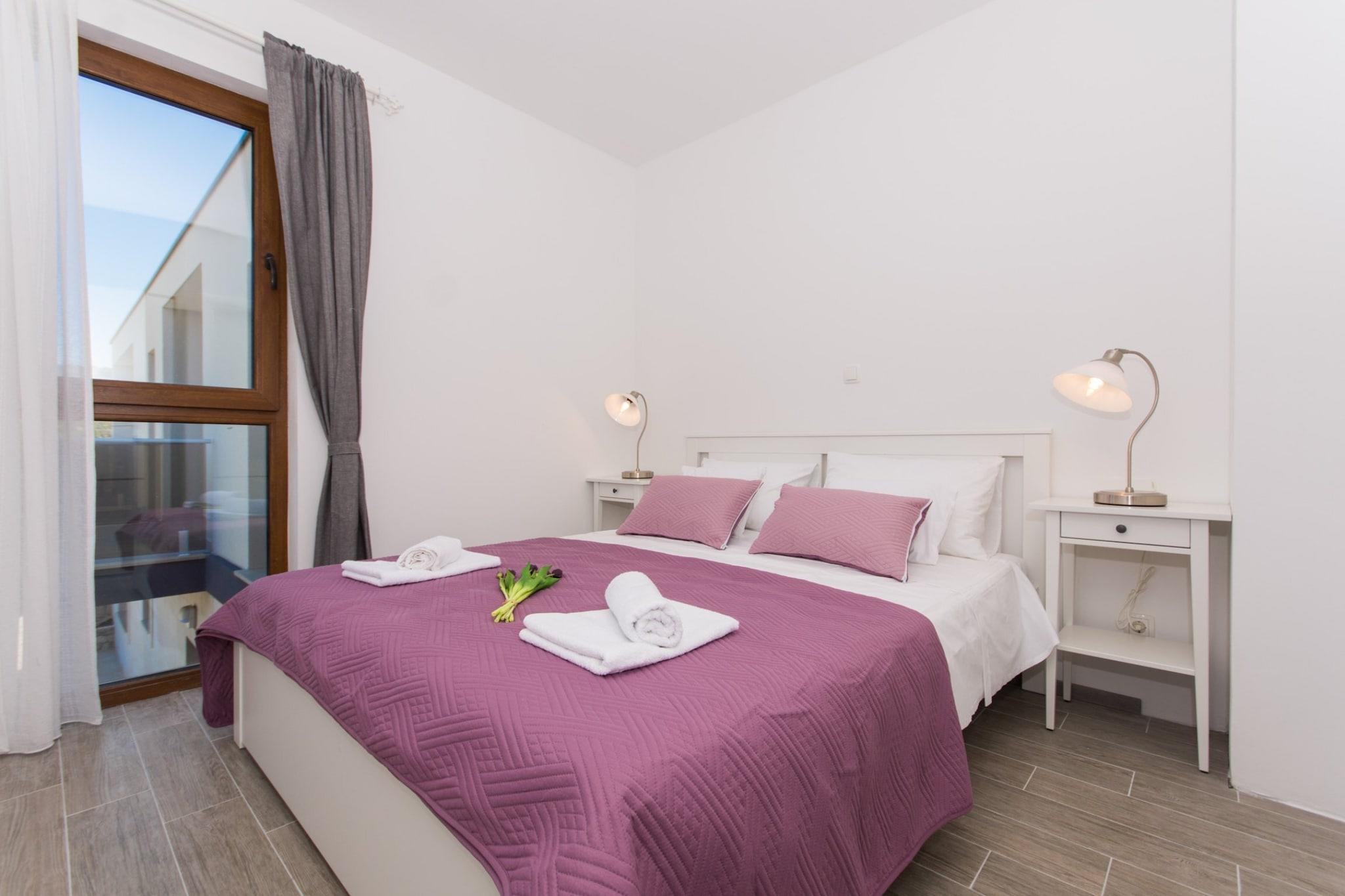 Villa LA er beliggende i Drvenik Veliki, en magisk ø beliggende i midten af Dalmatien, 8 sømil fra Trogir. Rummelig fælles solterrasse udstyret med liggestole og parasoller, udendørs swimmingpool, grillfaciliteter samt fælles have står til din rådighed, bare perfekt til en dejlig og afslappende familie- eller venners ferie. Bagageopbevaring er mulig før check-in og efter check-out, så du kan udforske øen lidt mere inden din afrejse. Der er gratis privat parkering, reservation er ikke nødvendig. Hvis du kommer med en stor bil, er vejen til lejligheden ikke tilgængelig. Parker i så fald din bil på "riva", som ligger ca. 300 m fra ejendommen. Ejerne henter dig derfra. Denne dejlige etværelses lejlighed med møbleret terrasse og havudsigt er perfekt til op til fire personer. Det har gratis WiFi, aircondition og SAT LCD-tv. Den åbne stue er udstyret med sofa og opholdsområde, og den er kombineret med udstyret køkken og spisebord. Lejligheden har et privat badeværelse med bruser og hårtørrer. Drvenik Veliki Island byder på uspoleret natur og smukke strande, et fredeligt miljø er perfekt til en rolig og intim ferie. Kysten er barsk og består af mange bugter med sand- og stenstrande. På den sydlige side af øen er den smukke bugt Solinska, og på østsiden er et dejligt sted kaldet Krknjaši, der er kendt under navnet Blue Lagoon. Der vil du finde et rart sted at spise med frisk fisk og skaldyr eller noget andet du foretrækker. Drvenik Veliki er en ø beliggende sydvest for byen Trogir (8 sømil). Færgeterminalen ligger i Trogir og afgår til Drvenik Veliki 3 gange om dagen (kører dig dertil på ca. 1 time). Fra Trogir busstation kan du nå færgeterminalen med en kort gåtur (10 minutters gang). Split lufthavn "Resnik" ligger kun 7 km væk fra Trogir og Zadar lufthavn ligger 110 km væk.