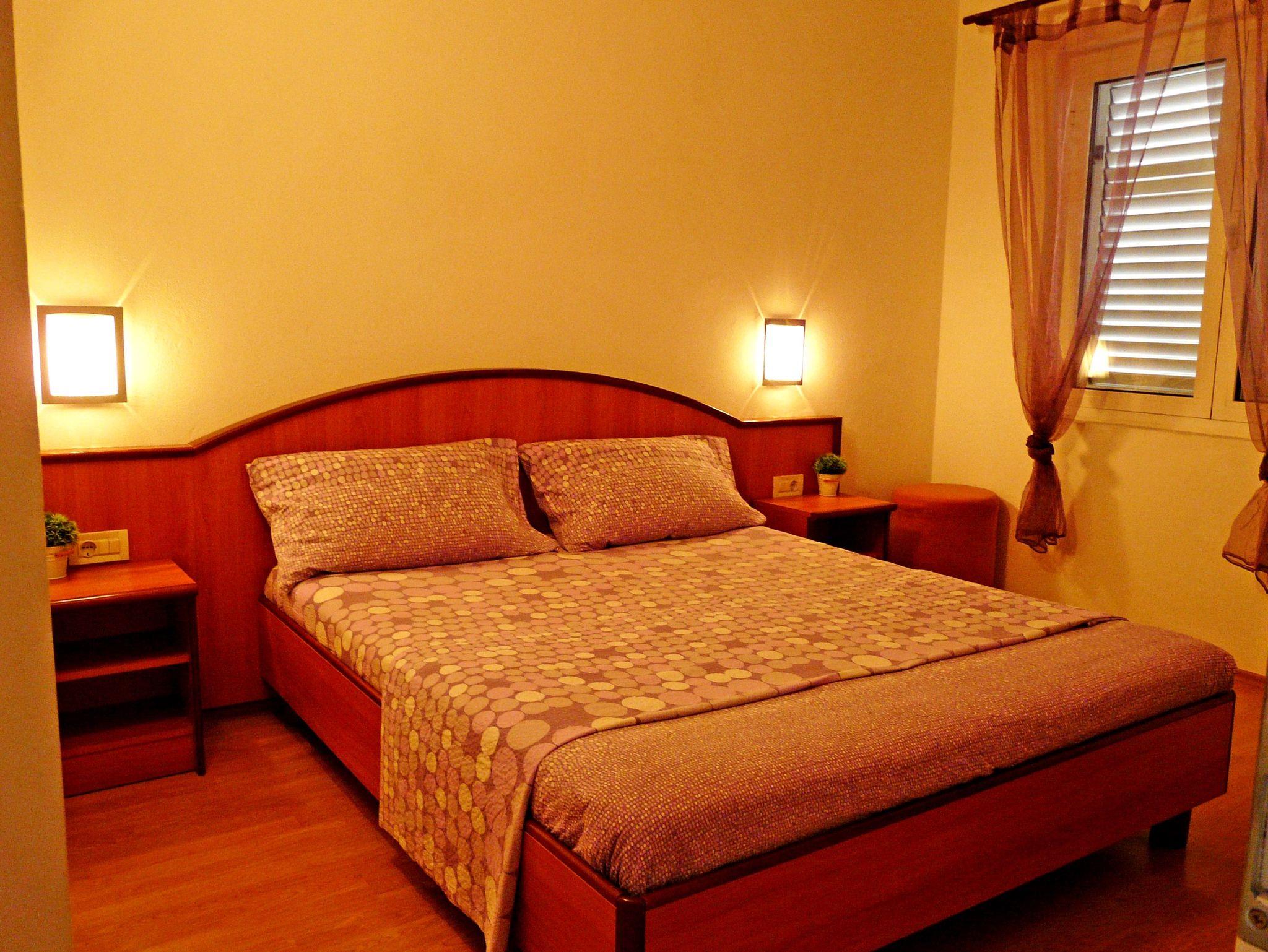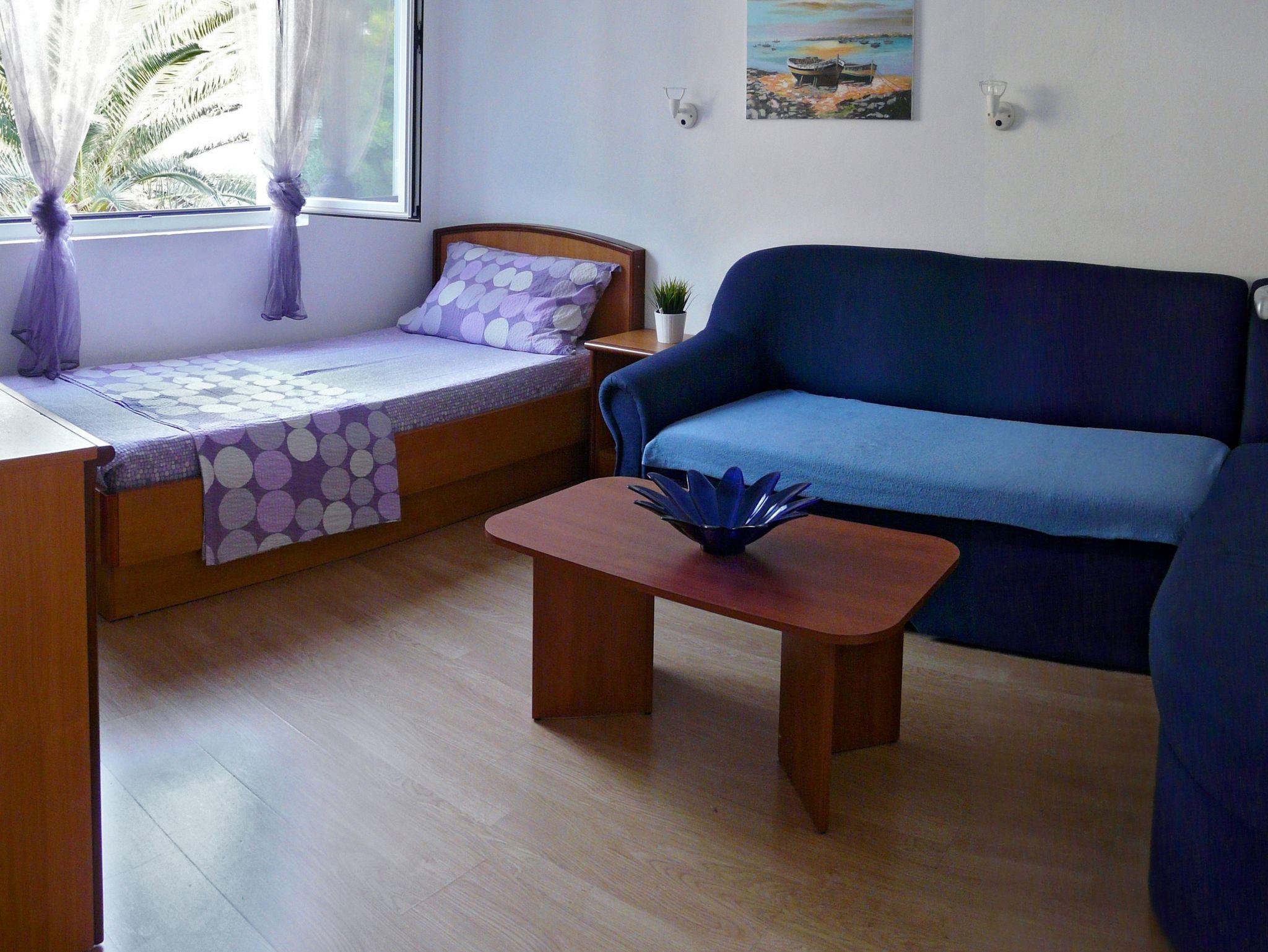 Ferienwohnung bietet Platz für 4 Gäste. Die Betten sind in Schlafzimmern, die es 1 gibt, und in Wohnzimmer, innerhalb einer Gesamtfläche von 38m2, angeordnet. Die Gäste haben einen eigenen Balkon zur Verfügung, auf der sie in warmen Sommernächten genießen können. Das Apartment bietet Meerblick. IM PREIS INBEGRIFFEN: Kurtaxe, Endreinigung, Klimatisierung, Parkplatz, Internet, Wäschewaschen, Bügeleisen, Bügelbrett, Föhn. VERBINDLICHE ZUSÄTZLICHE KOSTEN: Aufzahlung für Kurzaufenthalte (prozentualer Zuschlag pro Nächtigungsanzahl: 30% - 1, 20% - 2, 10% - 3). Die Verfügbarkeit zusätzlicher Dienstleistungen in Ihrem reservierten Termin und die Preise derselben (falls nicht aufgeführt) müssen im Voraus überprüft werden. Zusätzliche Dienstleistungen die in der Zahlungsaufforderung nicht aufgeführt sind werden direkt beim Vermieter bezahlt, angenommen der Gast nutzt auch diese. Ermäßigung auf den Grundpreis: Gratistag 14=13 (bei einem Aufenthalt von 14 Tagen oder mehr erhalten Sie einen Gratistag für den Aufenthalt bis 31.12.26).