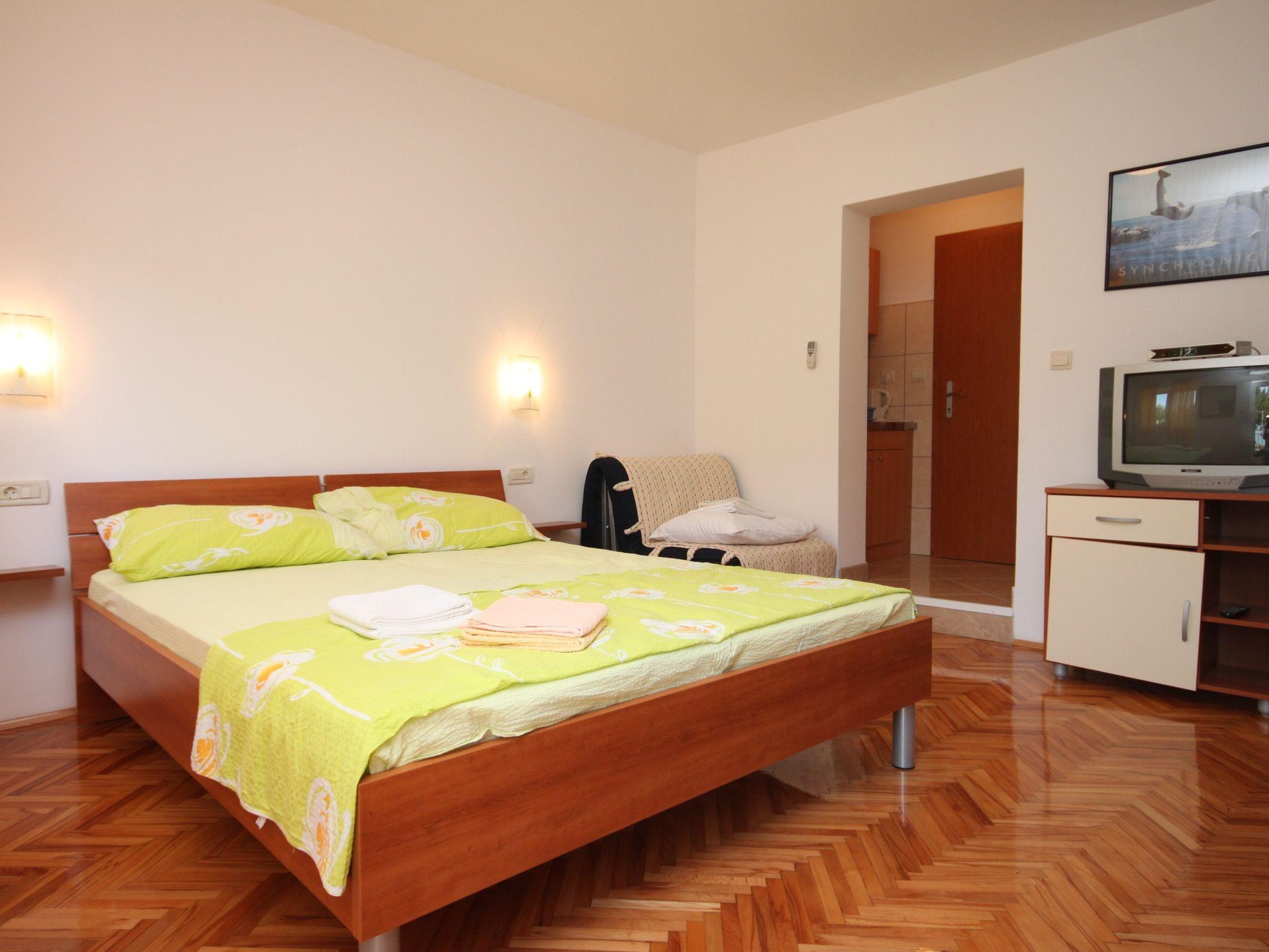 Studio bietet Platz für 3 Gäste. Die Betten sind in Schlafzimmern, die es 1 gibt, innerhalb einer Gesamtfläche von 20m2, angeordnet. Die Gäste haben einen eigenen Balkon zur Verfügung, auf der sie in warmen Sommernächten genießen können. Das Studio-Apartment bietet Meerblick. Es ist erlaubt, Speisen auf dem Gemeinschafts-Grill vorzubereiten. In der Unterkunftseinheit besteht die Möglichkeit des Mitbringens von Haustieren gegen Aufpreis. IM PREIS INBEGRIFFEN: Kurtaxe, Endreinigung, Klimatisierung, Parkplatz, Internet, Kinderbett, Bügeleisen, Bügelbrett, Föhn, tragbarer Grill. UNVERBINDLICHE ZUSÄTZLICHE KOSTEN: Haustiere (5,00 € pro Nacht). Die Verfügbarkeit zusätzlicher Dienstleistungen in Ihrem reservierten Termin und die Preise derselben (falls nicht aufgeführt) müssen im Voraus überprüft werden. Zusätzliche Dienstleistungen die in der Zahlungsaufforderung nicht aufgeführt sind werden direkt beim Vermieter bezahlt, angenommen der Gast nutzt auch diese. Ermäßigung auf den Grundpreis: Gratistag 14=13 (bei einem Aufenthalt von 14 Tagen oder mehr erhalten Sie einen Gratistag für den Aufenthalt bis 31.12.26).