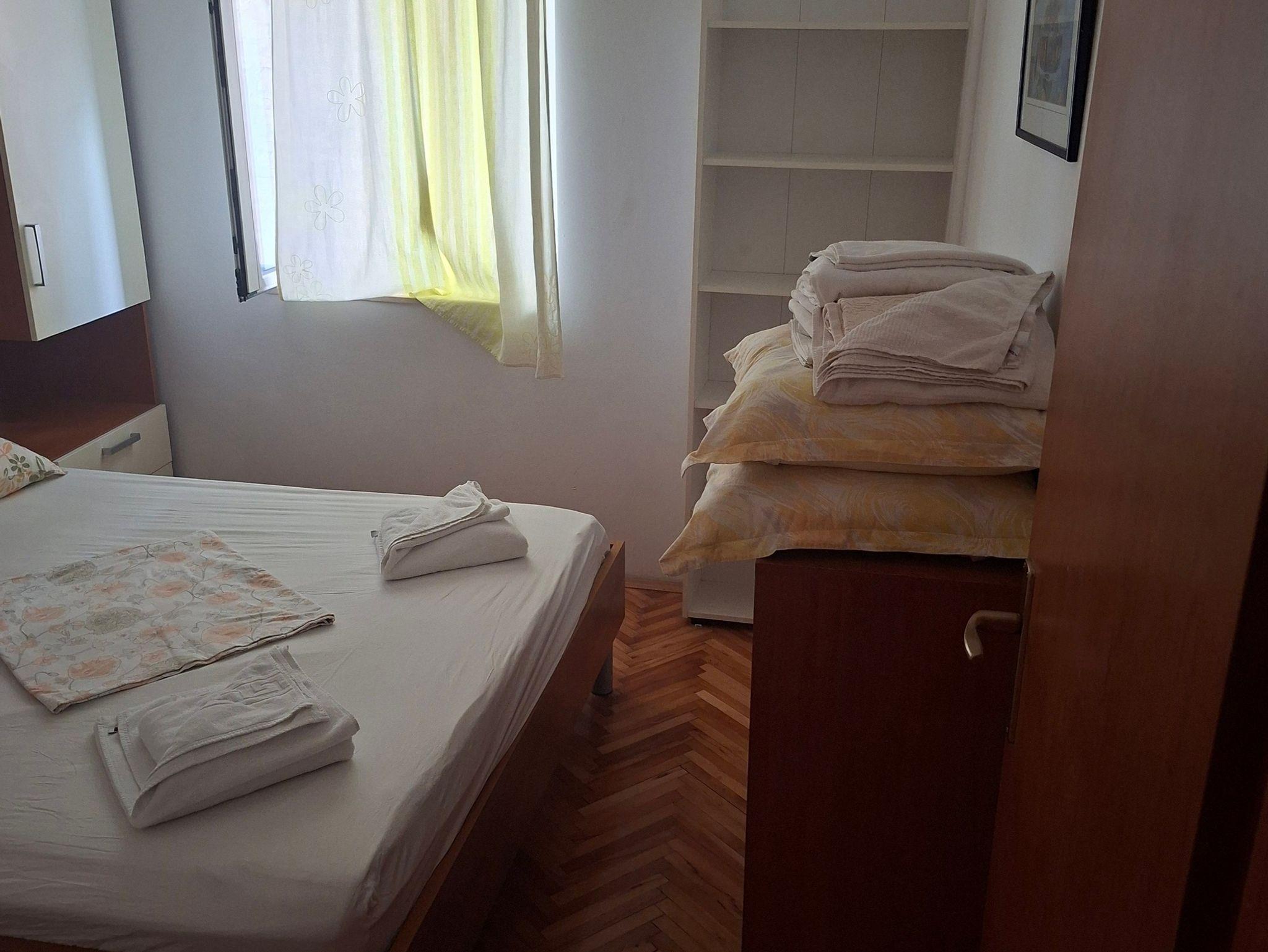 Ferienwohnung bietet Platz für 4 Gäste. Die Betten sind in Schlafzimmern, die es 1 gibt, und in Wohnzimmer, innerhalb einer Gesamtfläche von 32m2, angeordnet. Die Gäste haben einen eigenen Balkon zur Verfügung, auf der sie in warmen Sommernächten genießen können. Das Apartment bietet Meerblick. Für vollen Genuss und Entspannung gibt es einen privaten Grill für Gäste dieser Unterkunft. In der Unterkunftseinheit besteht die Möglichkeit des Mitbringens von Haustieren gegen Aufpreis. IM PREIS INBEGRIFFEN: Kurtaxe, Endreinigung, Klimatisierung, Parkplatz, Internet, Kinderbett, Bügeleisen, Bügelbrett, Föhn, tragbarer Grill. UNVERBINDLICHE ZUSÄTZLICHE KOSTEN: Haustiere (5,00 € pro Nacht). Die Verfügbarkeit zusätzlicher Dienstleistungen in Ihrem reservierten Termin und die Preise derselben (falls nicht aufgeführt) müssen im Voraus überprüft werden. Zusätzliche Dienstleistungen die in der Zahlungsaufforderung nicht aufgeführt sind werden direkt beim Vermieter bezahlt, angenommen der Gast nutzt auch diese. Ermäßigung auf den Grundpreis: Gratistag 14=13 (bei einem Aufenthalt von 14 Tagen oder mehr erhalten Sie einen Gratistag für den Aufenthalt bis 31.12.26).