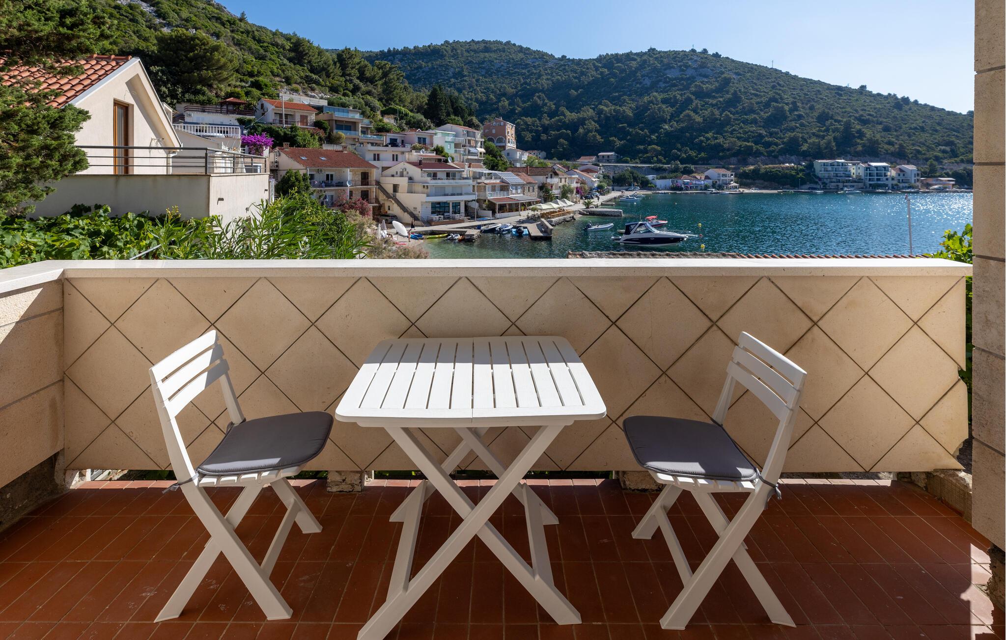 Slap af i denne praktiske ferielejlighed med en fantastisk havudsigt. Denne hyggelige lejlighed tilbyder alt, hvad I behøver for et afslappet og ukompliceret ophold: en lys stue med spisebord, en komfortabel sofa og et praktisk køkken. Slap af her, mens I tilbereder jeres yndlingsmåltid og nyder et godt glas vin. Gå ud på terrassen om morgenen med en dejlig kop kaffe og nyd den smukke udsigt over det blå hav og bugtens bølgende bakker. Læn jer tilbage og fordyb jer i middelhavsstemningen. Kun få meter væk ligger stranden, hvor I kan svømme i Adriaterhavets krystalklare vand og nyde solen. Udforsk de historiske gader i Dubrovniks gamle bydel, der er på UNESCOs verdensarvsliste. Tag en bådtur til de omkringliggende øer, eller oplev skjulte bugter, mens I ror kajak langs kysten. Vandreentusiaster vil nyde den betagende udsigt på ture gennem de grønne bakker omkring Klek.