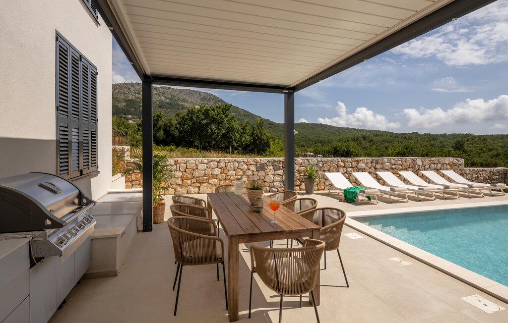 Tilbring ferien i denne luksuriøse villa nær Slano og nyd den betagende panoramaudsigt fra den rummelige terrasse med pool. Indenfor kan I forvente en lys, stilfuld atmosfære med højkvalitets designelementer og kærlig dekoration. Aktivitetsrummet med billard, bordtennis og musikinstrumenter sørger for underholdning, mens saunaen og spabadet på tagterrassen byder på ren afslapning. Her møder luksus komfort, og I kan nyde jeres tid ud i fulde drag - uanset om I solbader eller slapper af med udsigt over det omkringliggende landskab.