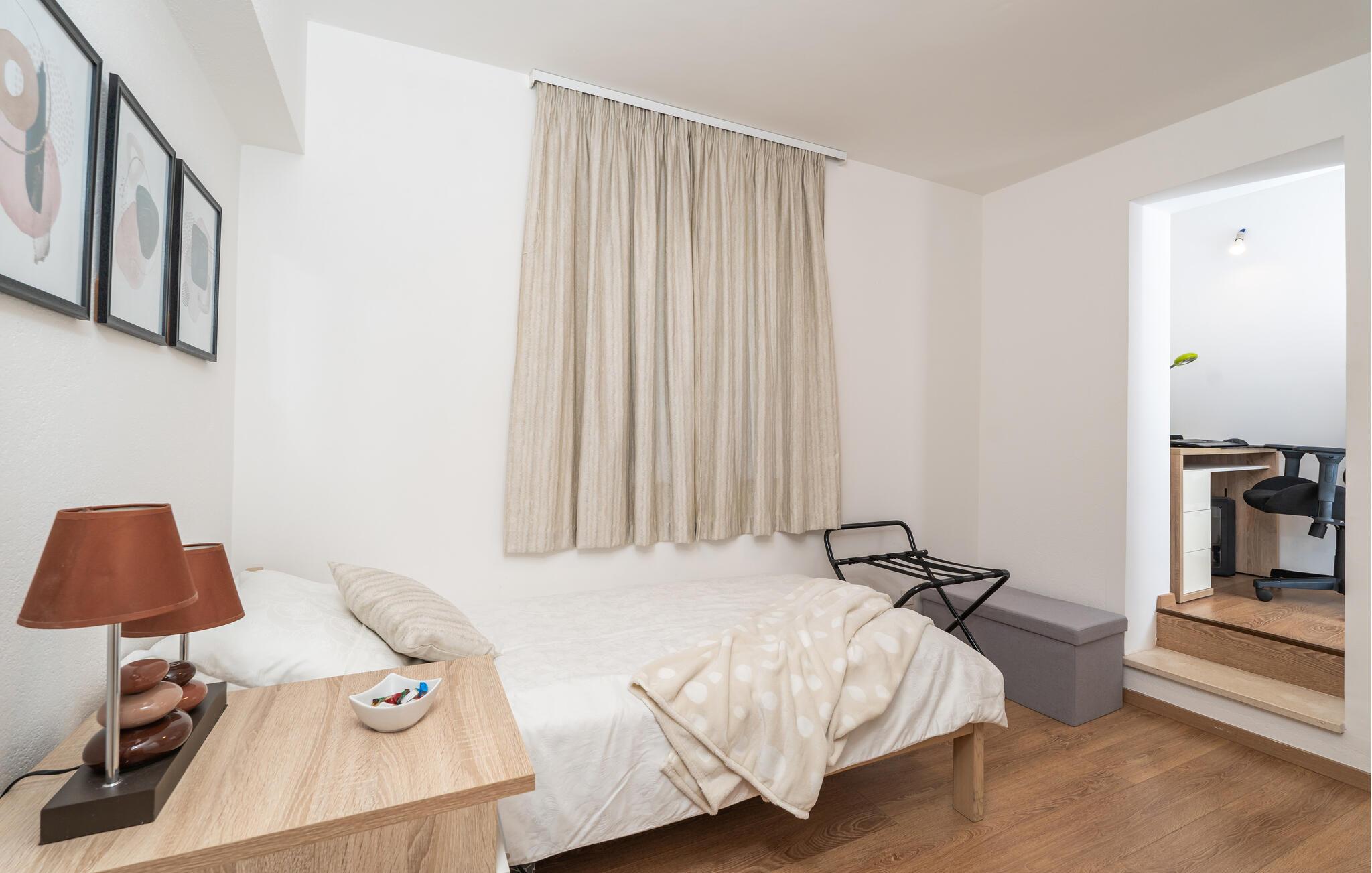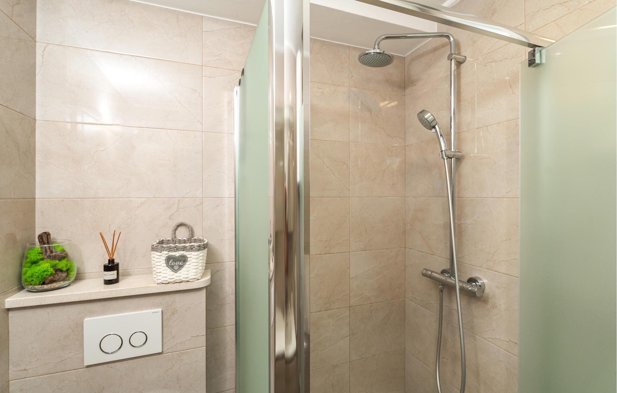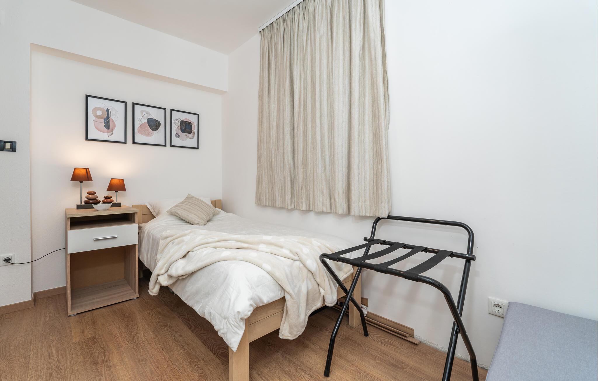Lad jer fortrylle af byens skønhed og komforten i jeres bolig. Tilbring uforglemmelige dage på Adriaterhavskysten og skab minder, der vil vare hele livet. Om morgenen kan I nyde den betagende udsigt over havet fra jeres balkon med dagens første kop kaffe. Opholdsstuen er hyggelig med en behagelig sofa. Åbn vinduet og luk den friske havbrise ind, mens I nyder et glas vin. Køkkenet giver blandt andet mulighed for at tilberede lækre snacks til jeres dagsture.