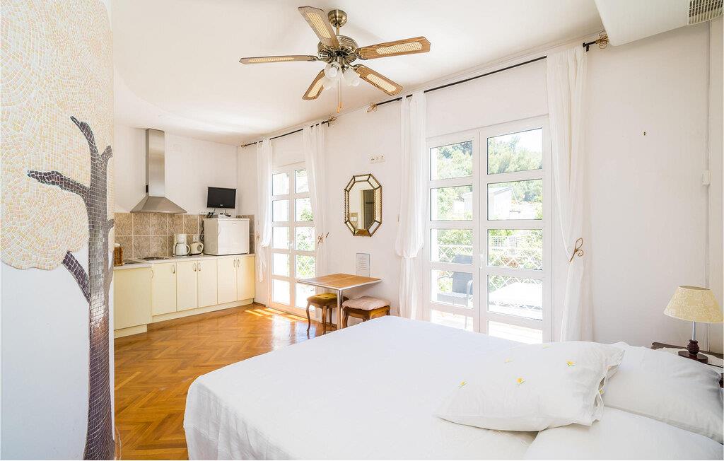Denne charmerende studiolejlighed i Zaton tilbyder jer alt, hvad I skal bruge for et afslappende ophold. Den hyggelige og lyse stemning lægger op til at have det godt, og den gennemtænkte indretning gør, at I kan se frem til en helt afslappende ferie. Den overdækkede fællesterrasse og poolområdet giver jer mulighed for at tilbringe dagen i fred eller for at chatte med andre gæster og nyde jeres ferie sammen.