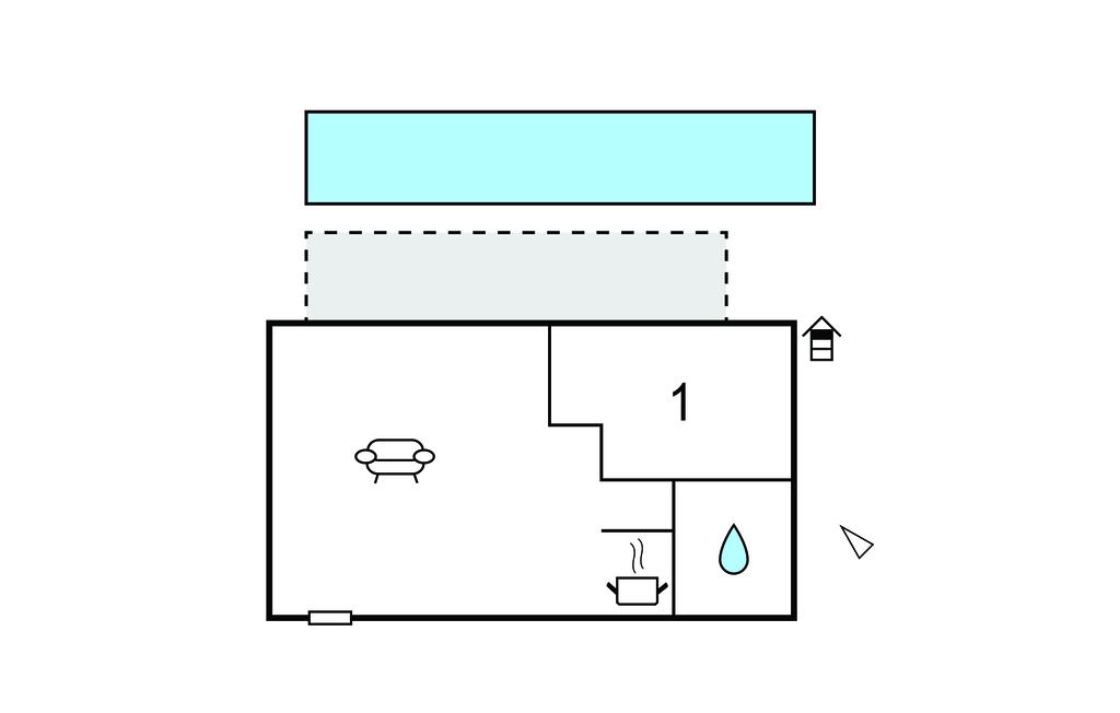 Opholdsstue/køkken 4m2 - 1 Soveplads. (Sofa, madras eller lignende).