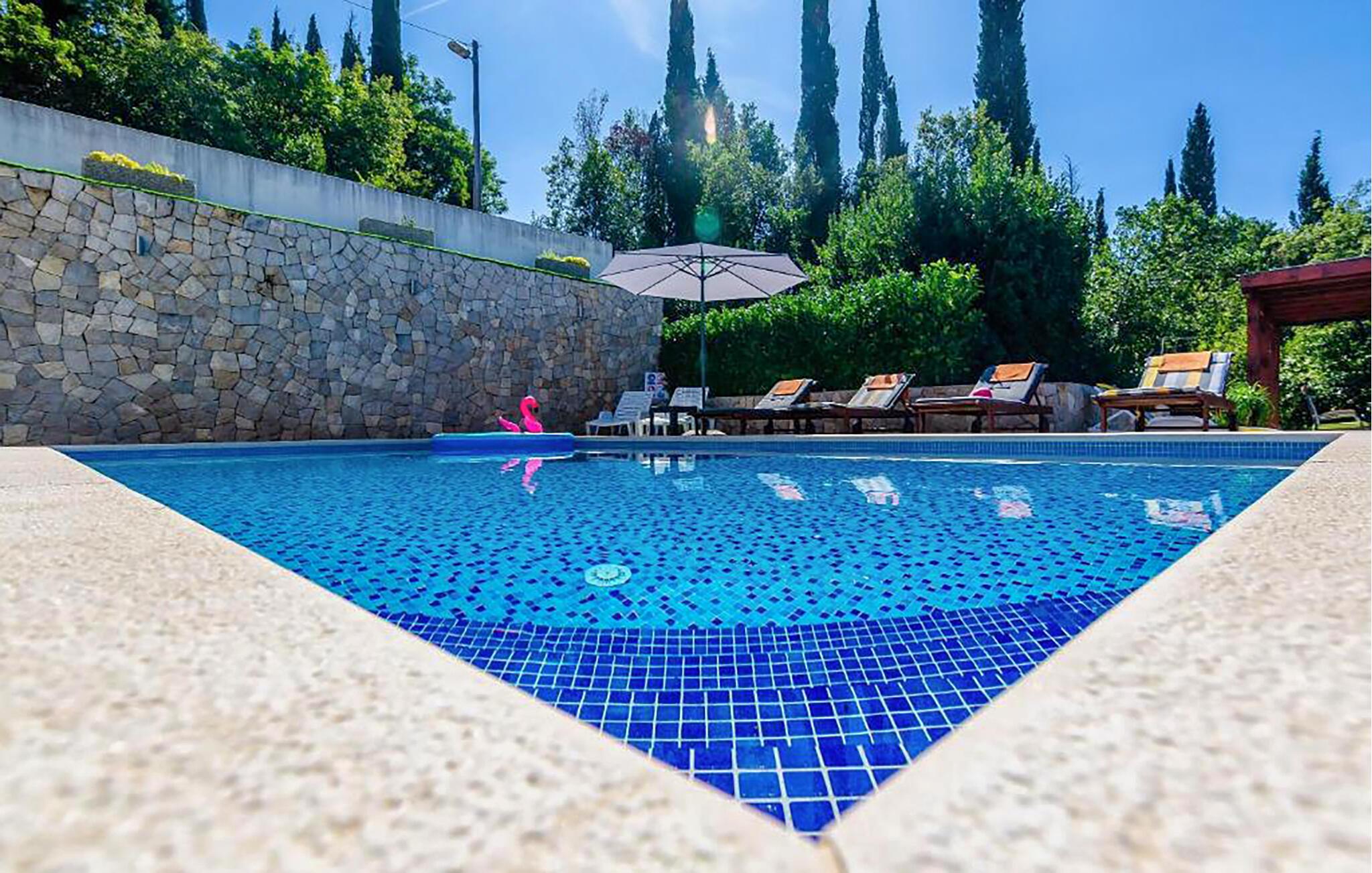Træd ud i den smukke have som det første om morgenen og lad blikket vandre over det grønne landskab. Tag en forfriskende dukkert i poolen og nyd et sjovt spil vandpolo. Bagefter kan I slappe af på en liggestol med en kølig drink og nyde de enkle glæder ved at lave ingenting.