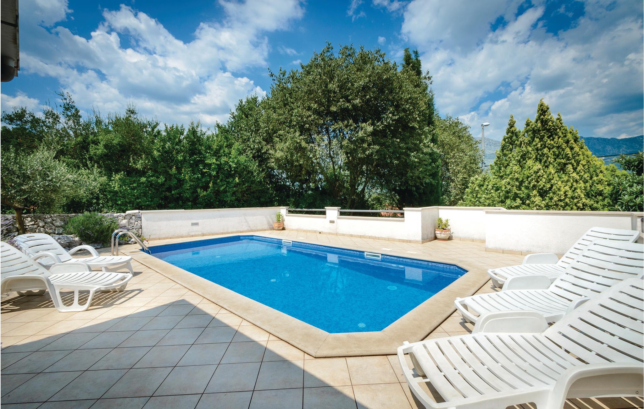 Omgivet af smuk natur, århundrede gamle træer og den evigt grønne maki ligger dette flot indrettede feriehus, som er opført i 2006. Huset råder ud over fire soveværelser, to badeværelser, et toilet, en opholdsstue og et åbent køkken med bar også over et værelse med internet, hvor I med jeres notebook kan holde kontakten til omverdenen ved lige. På terrassen har I desuden en vidunderlig udsigt til poolen og dermed også til jeres børn, når de boltrer sig i vandet. Læn jer tilbage og slap af, mens I nyder en kop kaffe eller et glas kroatisk vin. Den store grund byder på masser af plads til børnenes leg og til jeres firbenede ven, hunden. Imponerende er især udsigten til de omkringliggende bjerge og de frugtbare områder omkring Konavle.