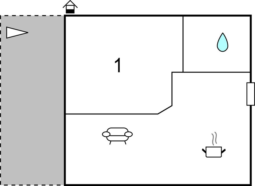 Opholdsstue/køkken - 2 Sovepladser. (Sofa, madras eller lignende).
