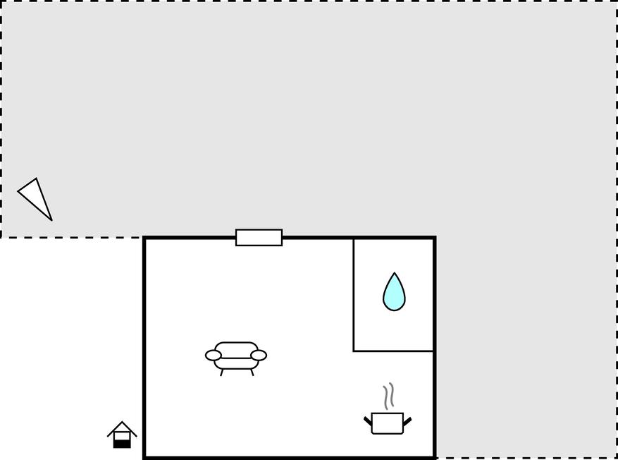Opholdsstue/køkken 23m2 - 2 Sovepladser. (Dobbeltseng(e)). 1 Soveplads. (Sofa, madras eller lignende).