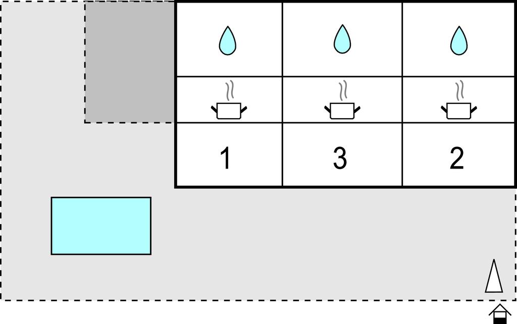 Badeværelse (nr. 3) - WC. Varmt og koldt vand. Bruser