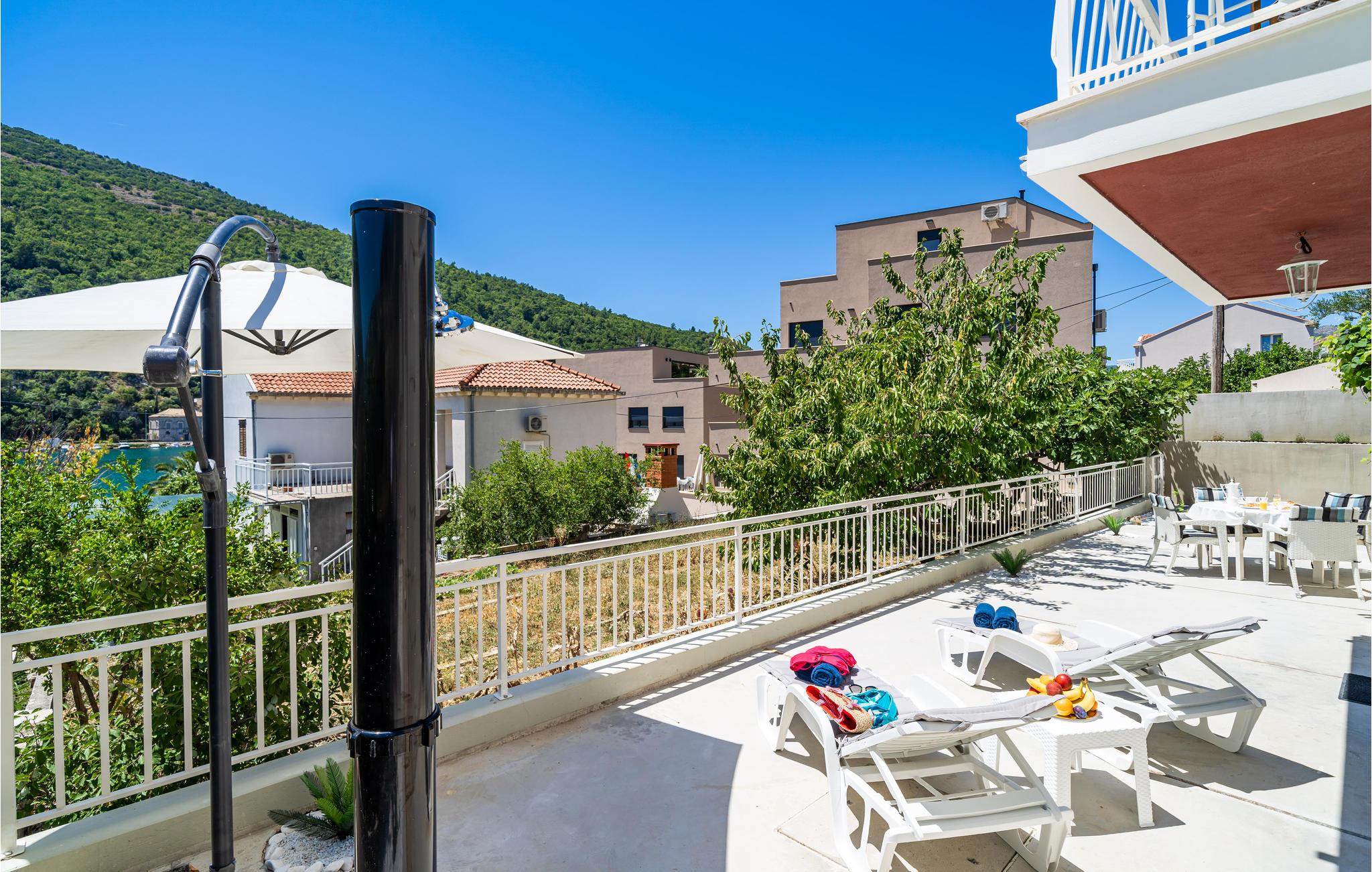 Huset har sin egen private dock, for I bor ud til en grøn fjord ved Dubrovnik. I kan hoppe i vandet direkte fra anløbsbroen eller køre til regionens smukke stenstrande ca. 5 km væk.