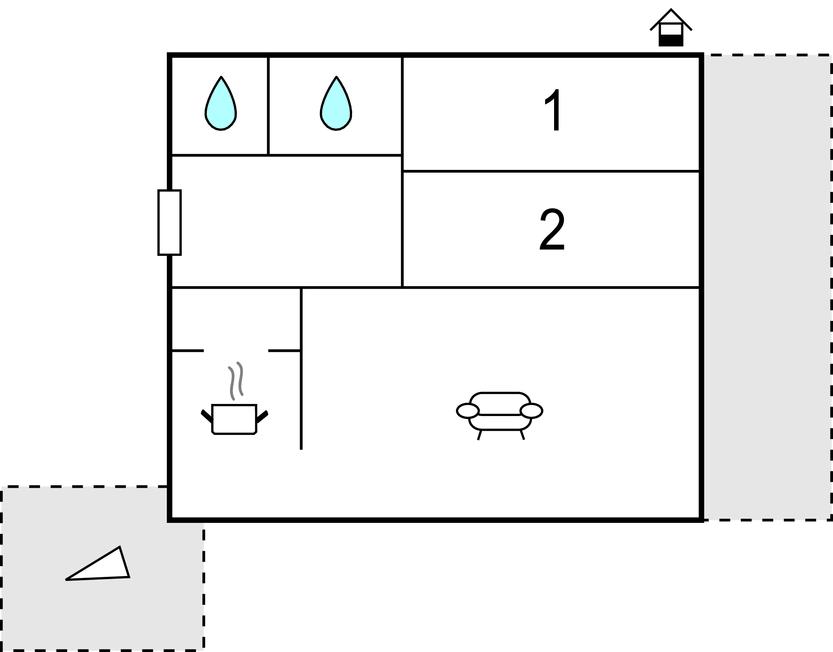 Opholdsstue/køkken - 1 Soveplads. (Sofa, madras eller lignende).