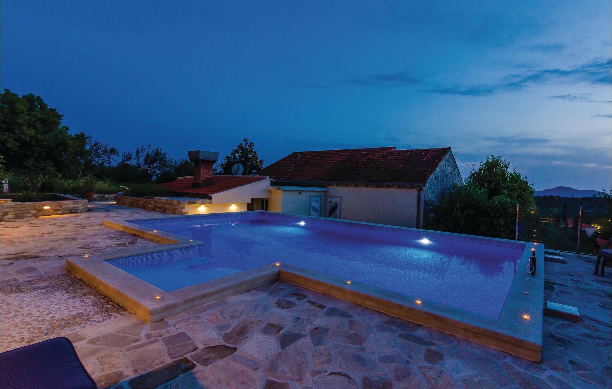 Dette typiske hus af sten ligger i en afsides lille by og har en betagende udsigt over havet og øerne og frem for alt fredelige omgivelser, der garanterer absolut privatsfære og intimitet. Huset er i et plan og rummer et køkken, stue, spisestue, tre soveværelser, to badeværelser og to yderligere toiletter. På grund af husets indretning og den store grund er det perfekt til børnefamilier. Det indre er praktisk indrettet og haven domineret af den store pool og en terrasse med grill og udendørs køkken. Besøg den berømte by Dubrovnik og gå en skøn tur gennem indkøbsgaden Stradun og på den brede gamle bymur. Nyd den charmerende atmosfære i den gamle historiske fæstningsby.