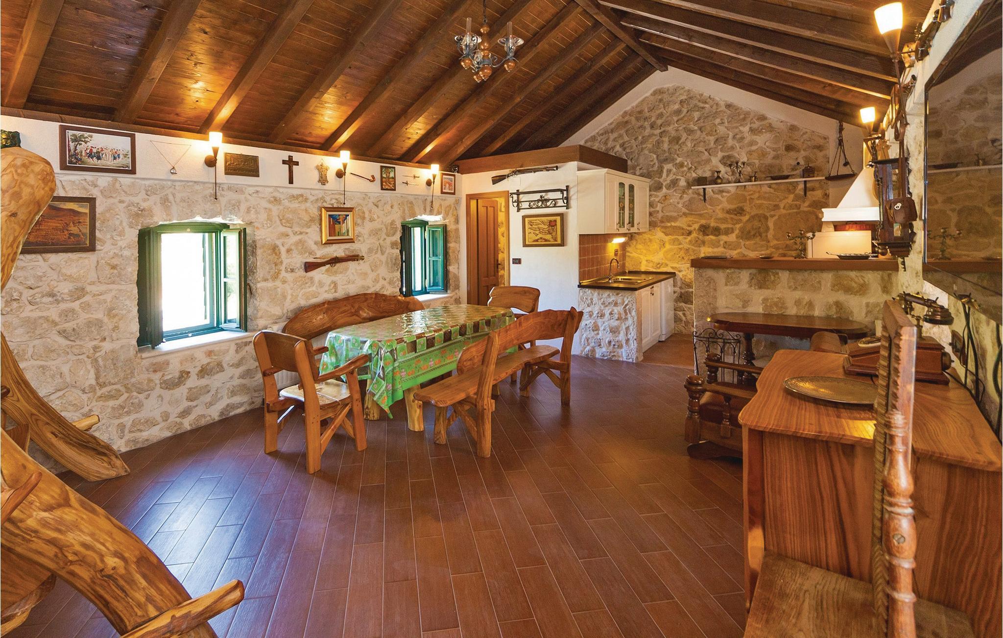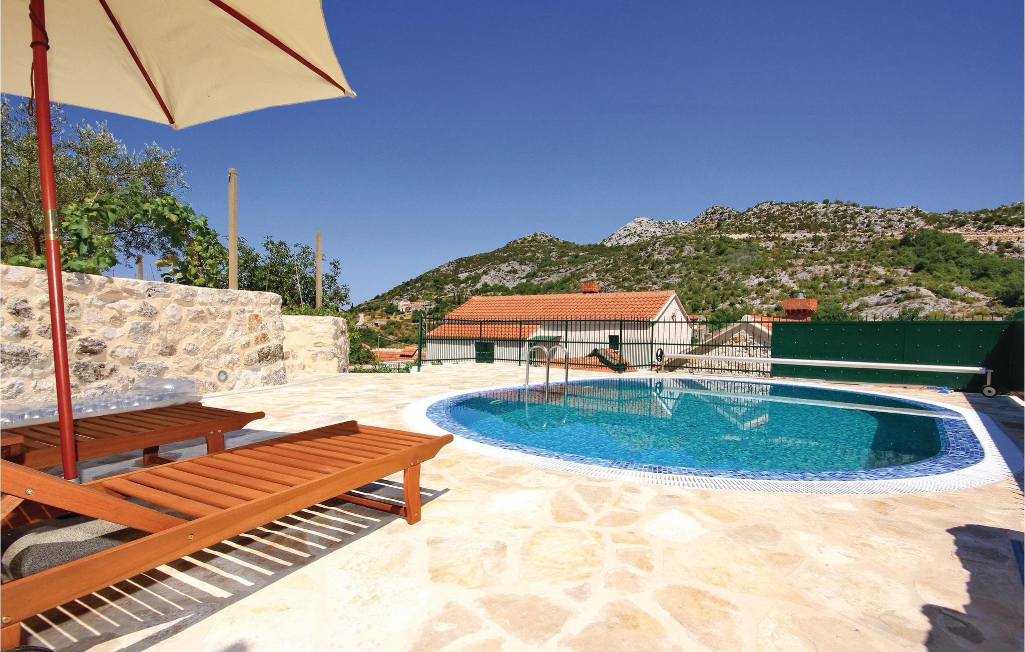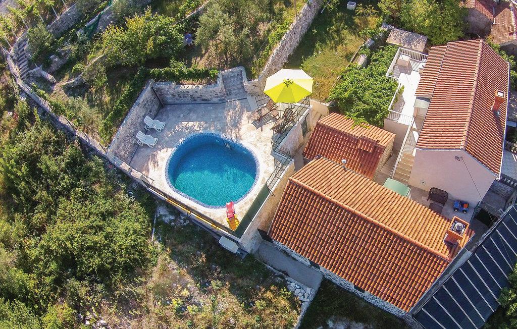 Dette egnstypiske hus af sten ligger i Dubrovnik-regionen og er et oplagt valg hvis i er to eller flere familier der gerne vil rejse langt væk fra hverdagen, uden at give køb på bekvemmeligheden. Huset er enkelt indrettet og har flere flisebelagte terrasser, forbundet med en udendørs pool. Her vil I garanteret tilbringe de fleste af døgnets vågne timer. På den ene terrasse står en bemærkelsesværdigt bord hugget ud i sten, over hvilket et tag af vinplanter sørger for dejlig skygge på de hede dage. Her kan I nyde et glas af den gode vin fra Peljesac-regionen eller fordybe jer I en spændende bog. Helt sædvanligt for denne bolig er tavernen indrettet med håndlavede møbler. Huset ligger i byens grønne del, til huset hører også et vinbjerg, fra hvis top der er en underskøn udsigt over det omgivende landskab. Oslje er en egnstypisk by og ligger bare ti minutter i bil fra havet. Et ideelt udgangspunkt for dagsture til de nærliggende byer Peljesac, Korcula, Mostar og Medugorje. Kulturbyen Dubrovnik ligger 45 min væk i bil.