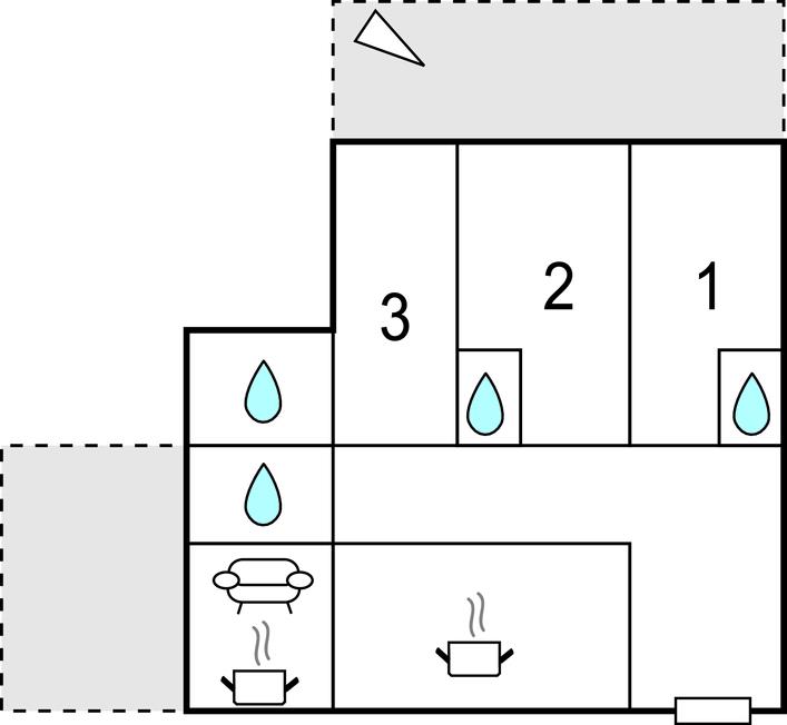 Badeværelse (nr. 3) - WC. Varmt og koldt vand. Bruser