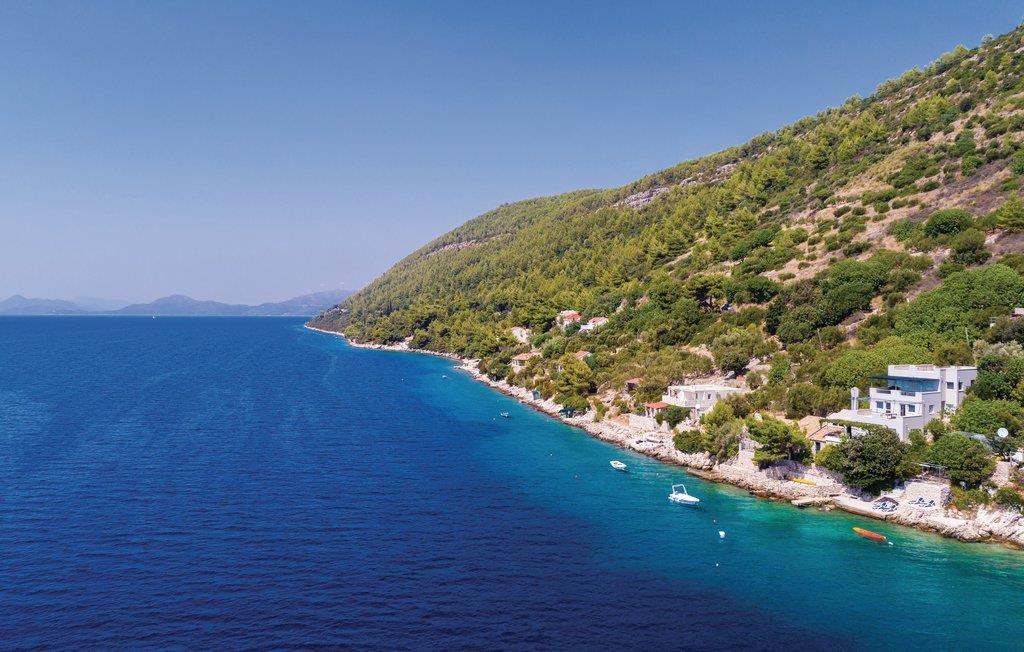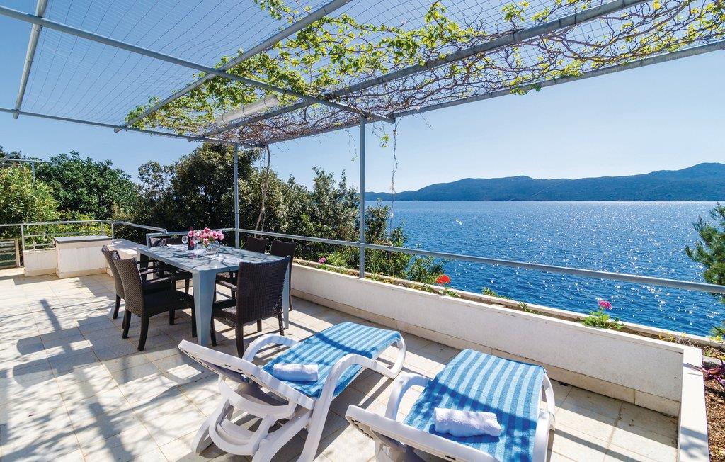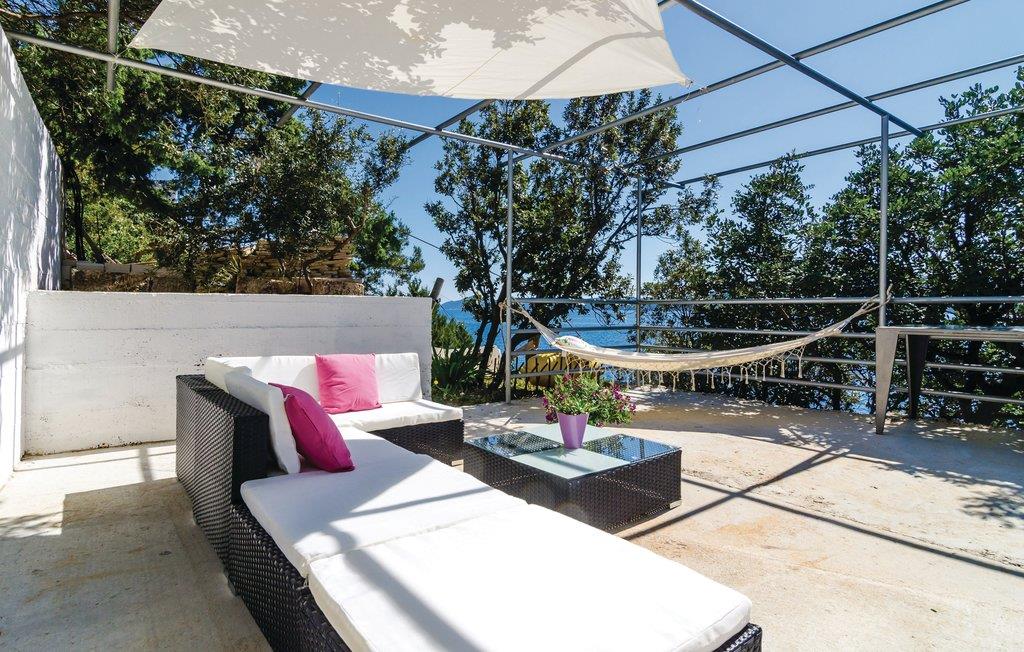 I lejligheden er der to soveværelser, et badeværelse og et køkken i åben forbindelse med stuen. I haven er der en konoba med grill og flere terrasser, hvorfra udsigten over Elaphiten-kanalen er betagende. Fra parkeringspladsen op til lejligheden er der ca. 50 trappetrin, så den er ikke egnet for personer med ganghandicap.
