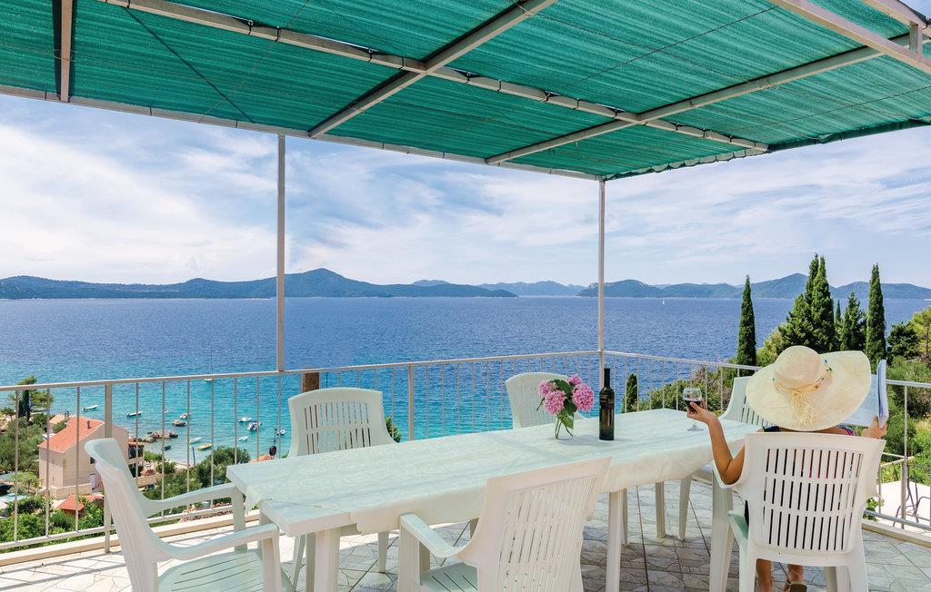 Dette rummelige og enkelt indrettede rækkehus er beliggende i den lille kystby Sladenovici. Det er ideelt til to familier med børn, da her findes fire soveværelser, to badeværelser, toiletter, opholdsstue, køkken og spisestue forbundet med en indendørs trappe. På den dejlige terrasse kan I nyde hele dagen ved den rolige bugt samt duften af ??skoven og havet. Fra den øverste terrasse er der en storslået panoramaudsigt. Stenstranden ligger kun 100 m fra huset. Der er 35 km til den interessante historiske by Dubrovnik, med sine mange seværdigheder og sin helt særlige atmosfære. Her er der også dejlige restauranter til et godt måltid når mørket sænker sig.