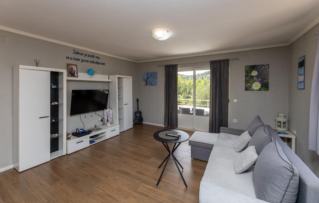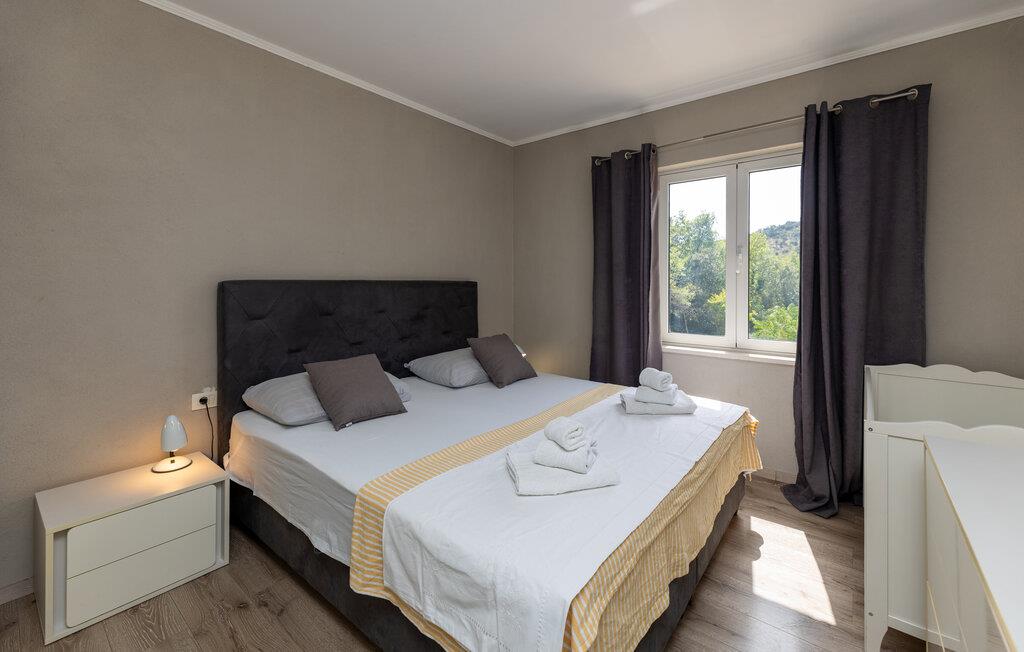 Oplev en afslappende ferie i denne lyse lejlighed med vidtstrakt udsigt. Slap af i den store sofa eller i den behagelige lænestol med en god bog. Det åbne køkken gør det til en leg at tilberede måltider. Nyd fælles stunder ved det rummelige spisebord, der er bekvemt placeret ved vinduet. Gå ud på den overdækkede terrasse, og beundr den uhindrede udsigt over det grønne landskab, der omgiver huset. Slap af ved havebordet, og tilbring lidt rolig tid udenfor. Brug den indbyggede stengrill til at nyde det åbne rum og skabe en fredelig atmosfære. Fra Zaton Doli kan I udforske regionens attraktioner og besøge den historiske gamle bydel i Ston med dens verdensberømte bymure. Udforsk Stons saltpander, og oplev den traditionelle saltproduktionsproces. Tag en vandretur til Veliki Kaštio-fæstningen, eller prøv frisk fisk og skaldyr i Mali Ston, der er kendt for sine østers. Udforsk den panoramiske vej mod Dubrovnik, eller tag en tur til Pelješac-halvøen med dens afsondrede strande og vinmarker.