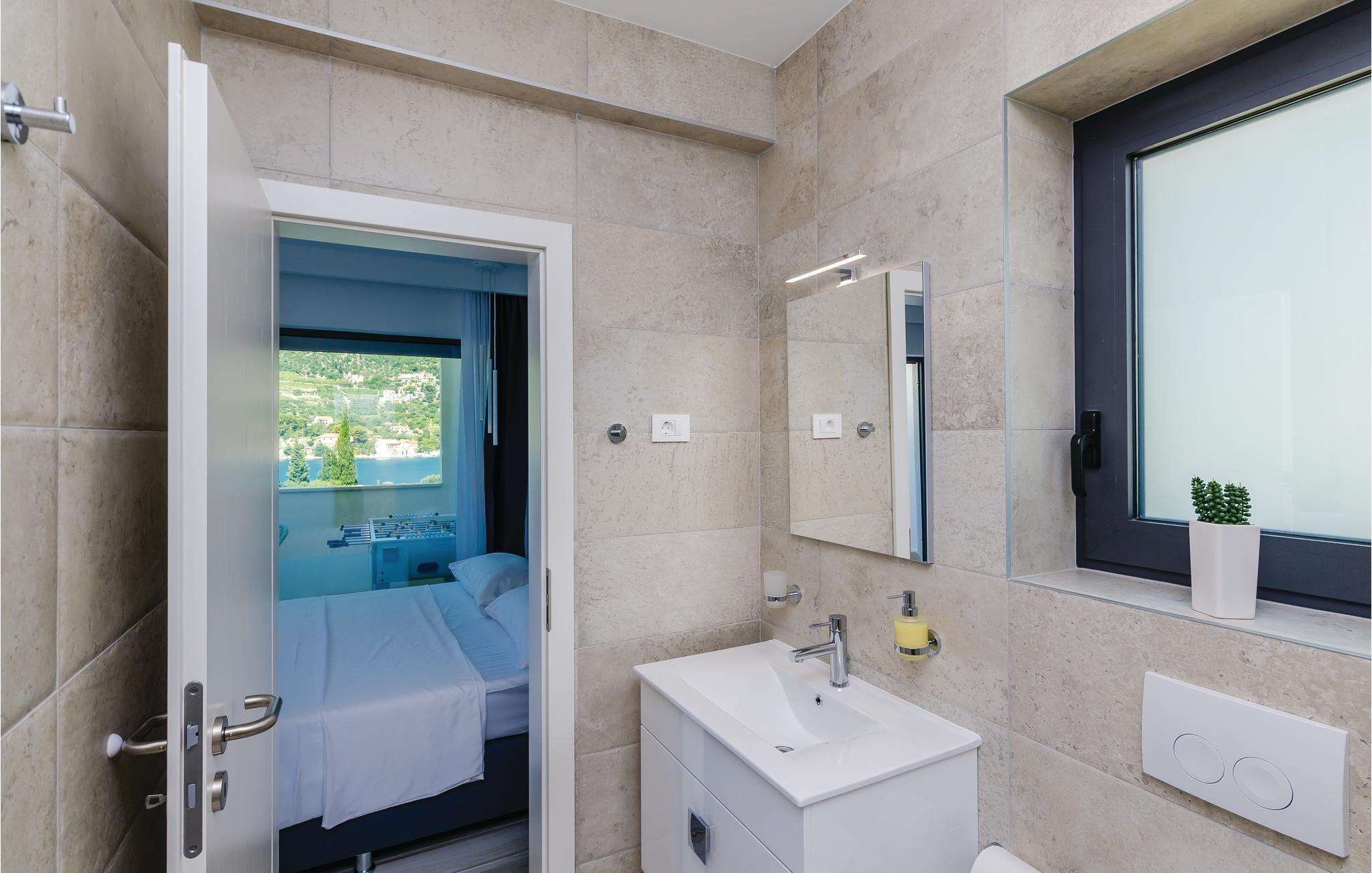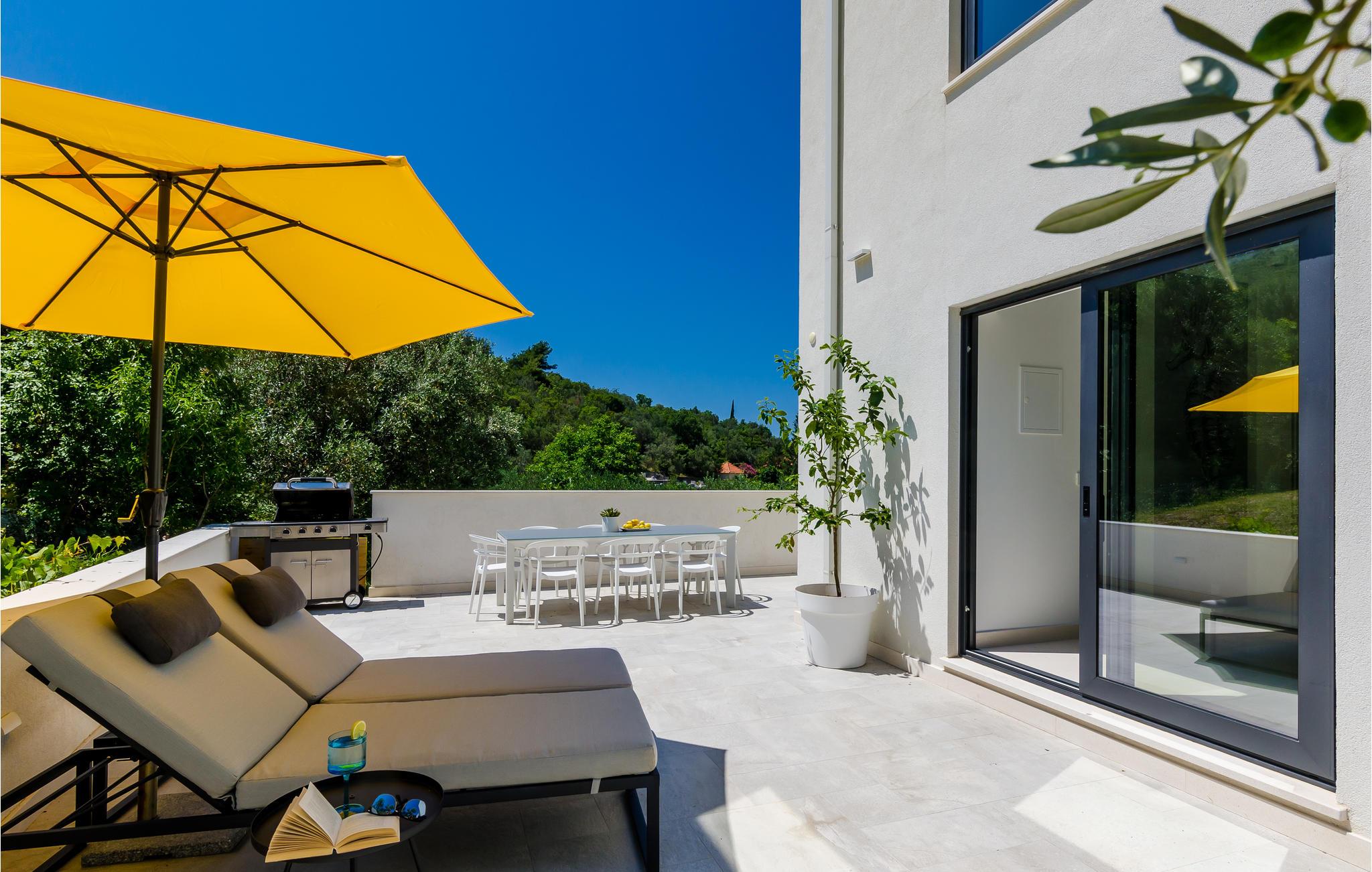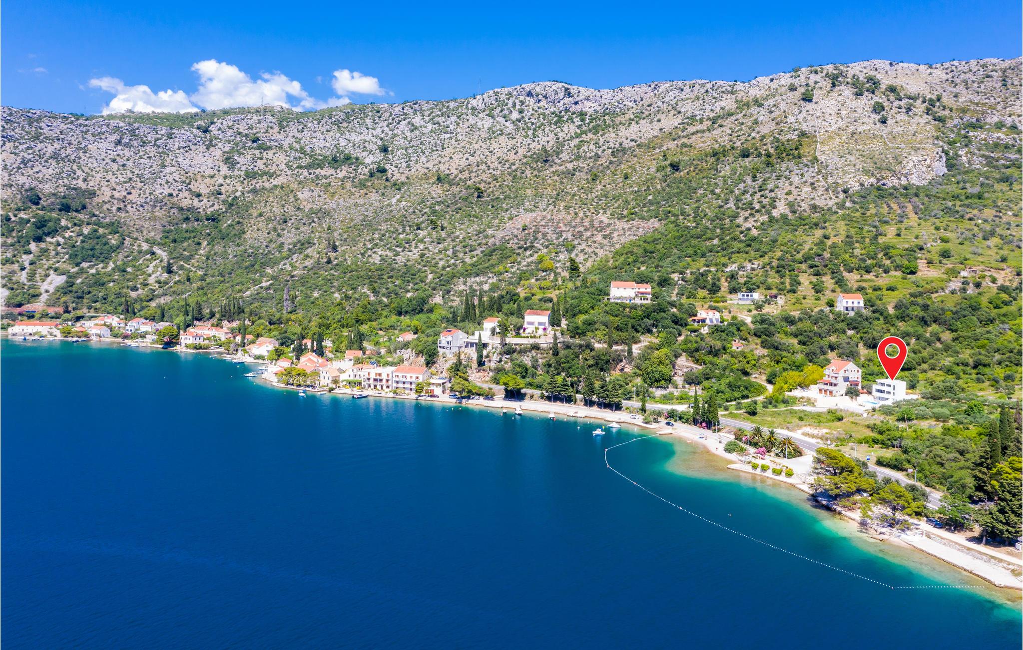 Dette skønne feriehus med privat pool, ligger på en bakke, med en vidunderlig panoramaudsigt over havet og Zatonbugten. Husets indre er smagfuldt og moderne indrettet. Tilbring de lange afslappede dage på terrassen, ved den forfriskende pool, og lav mad på grillen og nyd den i de behagelige havemøbler – eller slap af i loungen med et godt glas vin. Fra terrassen med pool er der en betagende udsigt over solnedgangen i havet – oplev hvor mange nuancer der er i rødt og orange. I husets bageste del kan I spille bordfodbold. Zaton er en autentisk by i Dalmatien der kun ligger fem km fra den berømte by Dubrovnik, med sin uforglemmeligt smukke arkitektur og mange former for sommerunderholdning. Som noget helt særligt, ligger stranden og havet kun 80 meter fra jeres hus.