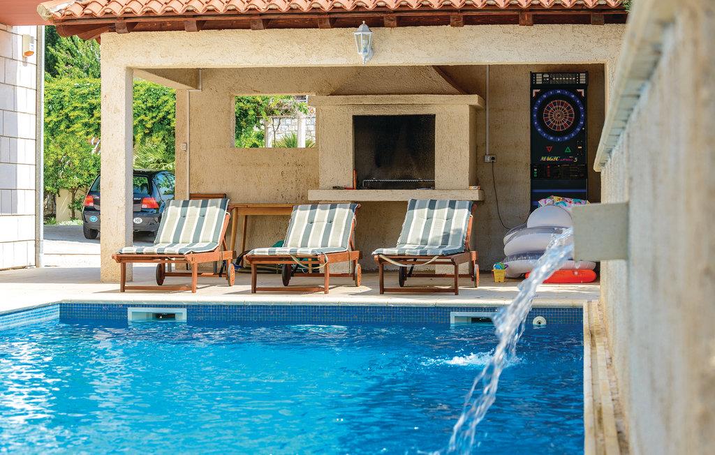 På en skråning i Zaton Veliki ligger dette feriehus, hvor I straks fornemmer den skønne middelhavsatmosfære. Huset er udstyret med alt hvad I skal bruge, for at holde en dejlig ferie. I bor lige foran Dubrovniks riviera. Den store solgård indbyder til hygge og solbadning. Ved siden af swimmingpool ligger det overdækkede udekøkken, hvor I sammen kan tilberede lækre feriemåltider. Swimmingpool står til enhver tid til rådighed for afkølende svømmeture og masser af sjov. Ved huset er der flere terrasser, hvor I kan sidde og slappe af med en god bog eller hyggesnakke over en kop kaffe eller et glas vin. I stueplan er der et soveværelse, et badeværelse og den rummelige stue der er åben til køkkenet og spisestuen. På øverste etage er der fire yderligere soveværelser og et badeværelse. Der er en trafikeret gade foran feriehuset.