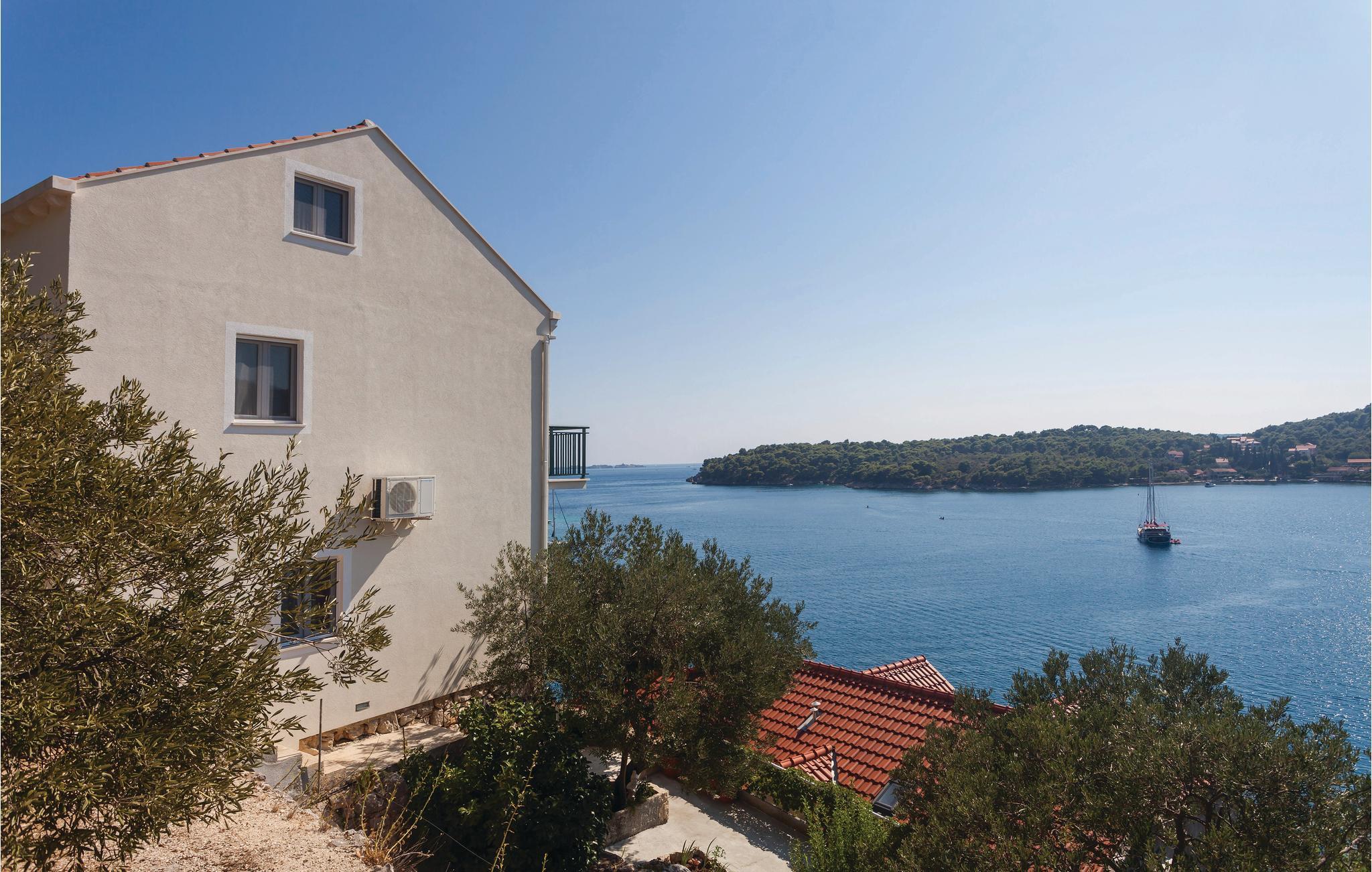 Denne rummelige ferielejlighed ligger i stueplan, højt og flot med en betagende udsigt ud over hele Zaton Velikibugten. I bor ikke langt fra hovedgaden og fra parkeringspladsen der hører til ejendommen, skal I gå op ad en trappe med ca. 50 trin. Nær klippe og kiesstrande, nærmeste sandstrand ligger i Stikovica. Foran huset ligger en dejlig terrasse hvor grillen står. Besøg den gamle by Dubrovnik, en by med interessant gammel historie og arkitektur.