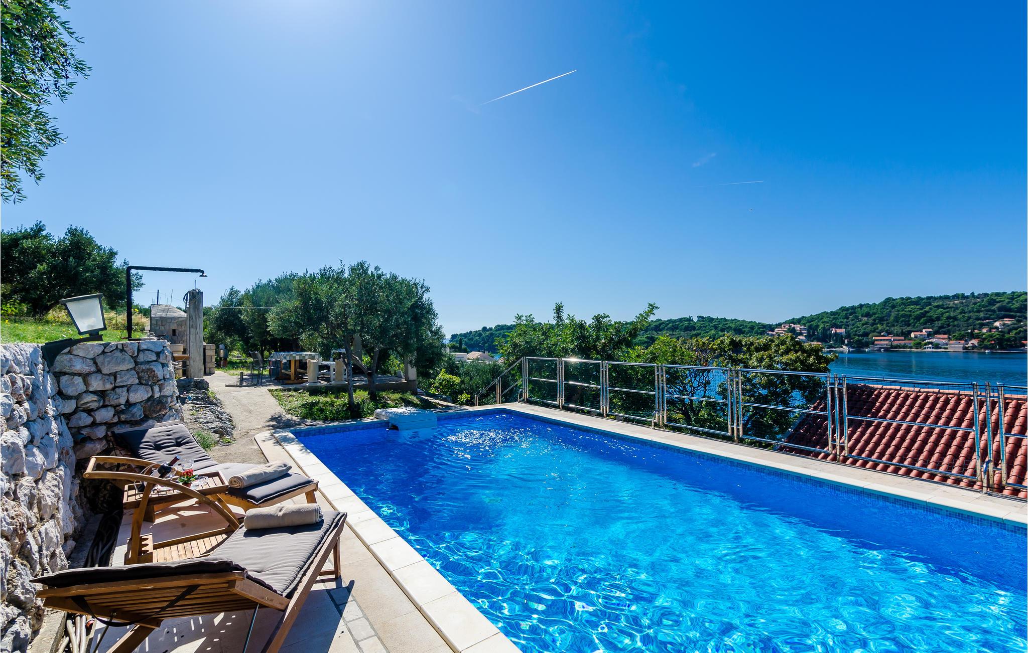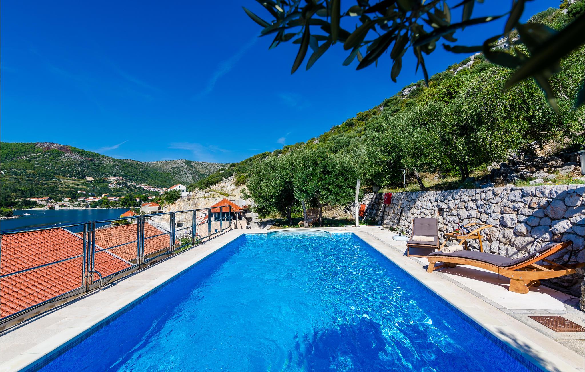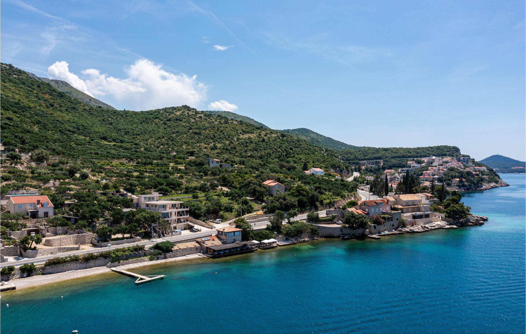 Dette feriehus ligger ved havet, med en vidunderlig panoramaudsigt. Helt ideel til par og en lille familie, der gerne vil have duften af havet i næsen og adgang til en privat og 100 % ugenert pool. Husets indre er stilfuldt indrettet og rummer i stueplan køkken, spisestue og stue, soveværelser, badeværelse og wc, førstesalen er helt lukket af og bruges ikke. Der er kun 50 m til nærmeste kiesstrand. For at komme til havet skal I passe hovedvejen. I en nærliggende resort kan i mod betaling bruge tennisbaner, minigolf og andre former for sportsanlæg. Besøg også Dubrovnik, rig på historie, seværdigheder og med utallige former for underholdning, der her tiltrukket besøgende fra hele verden gennem mange år.
