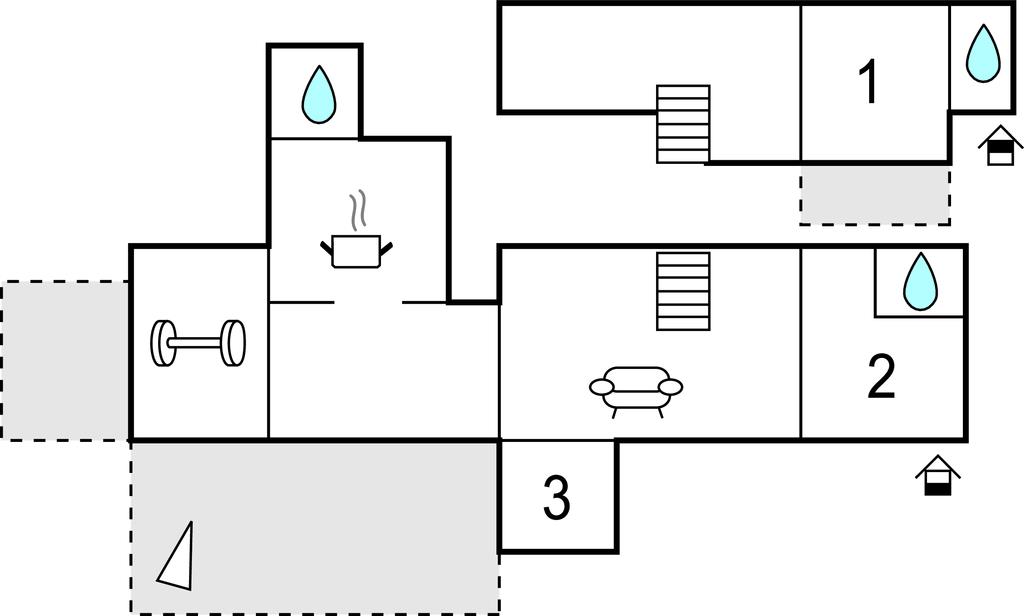 Badeværelse 3m2 (nr. 3) - WC. Varmt og koldt vand. Bruser