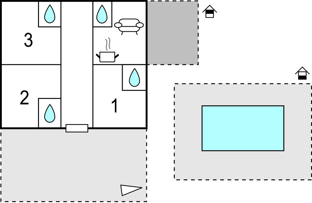 Badeværelse 3m2 (nr. 3) - WC. Varmt og koldt vand. Håndbruser