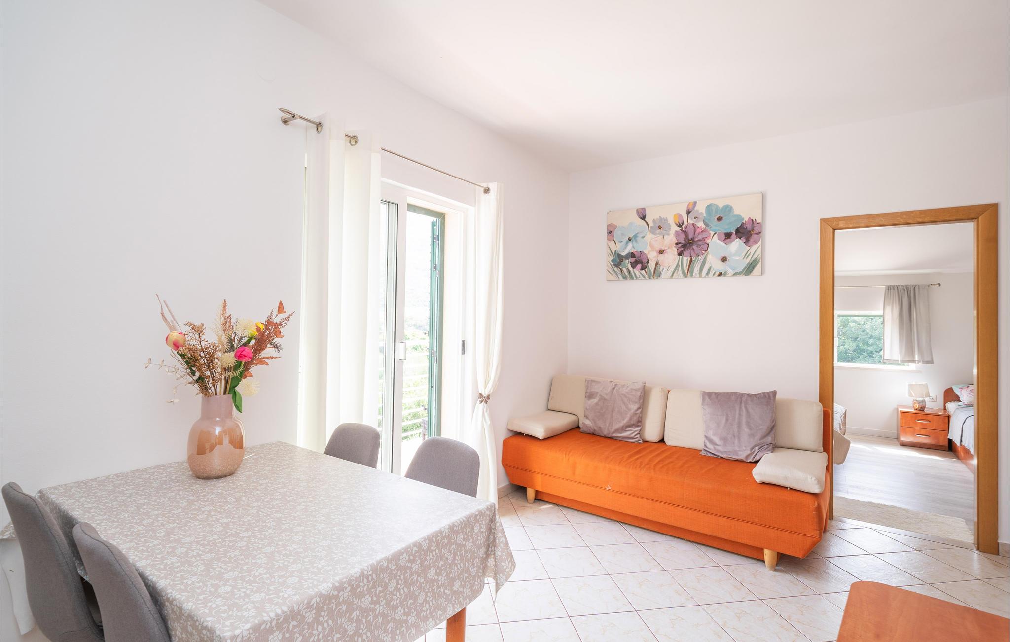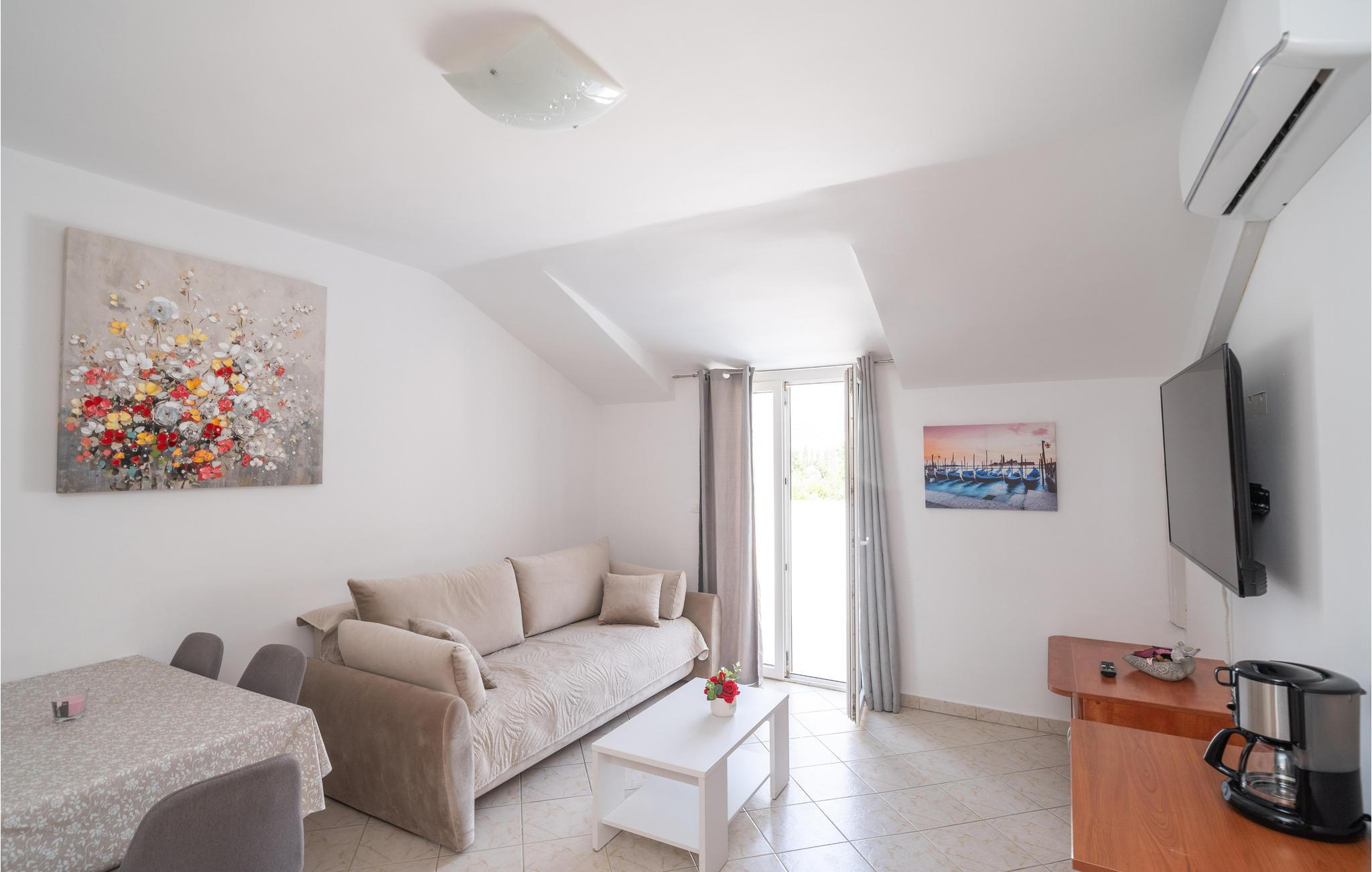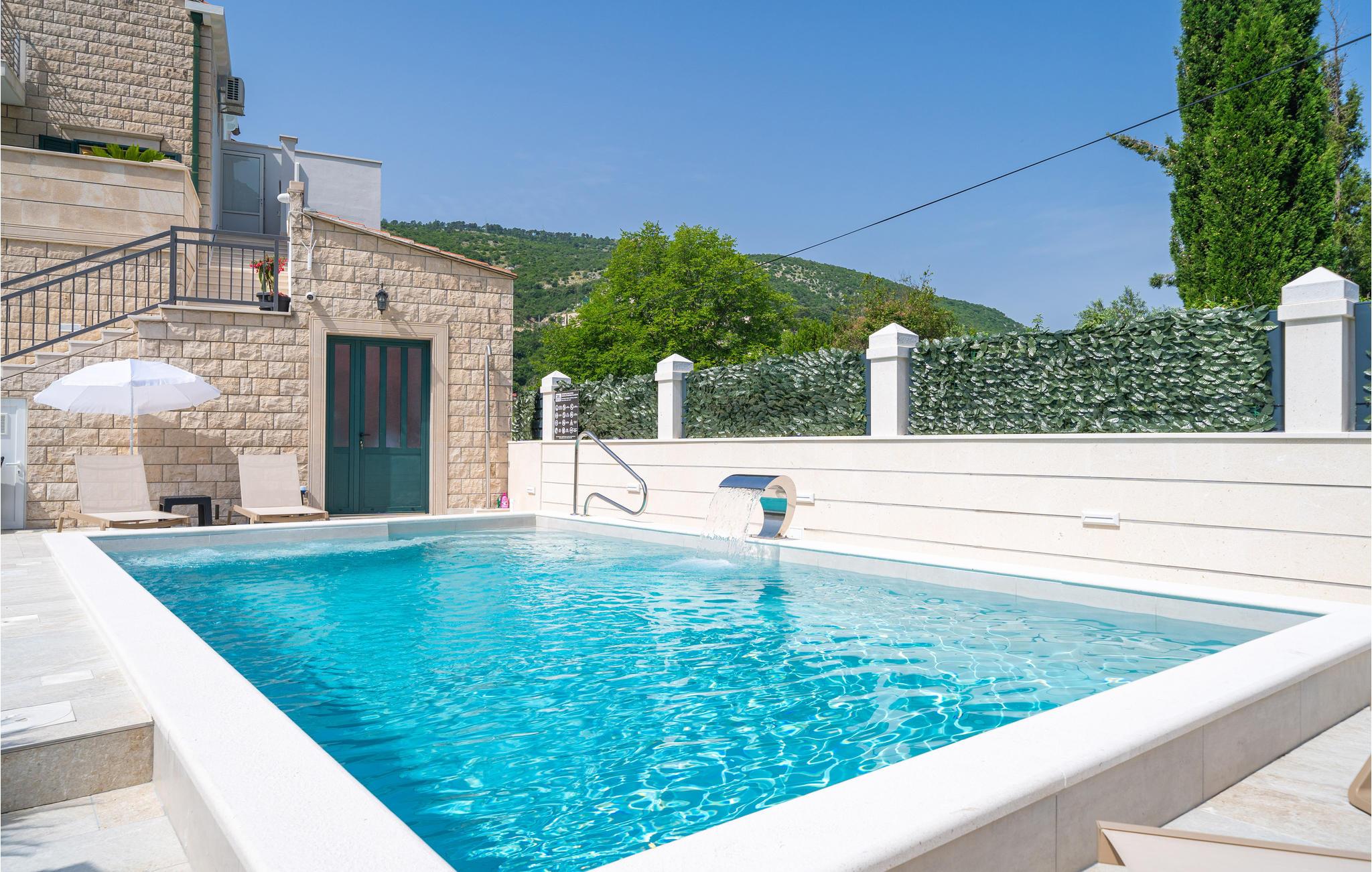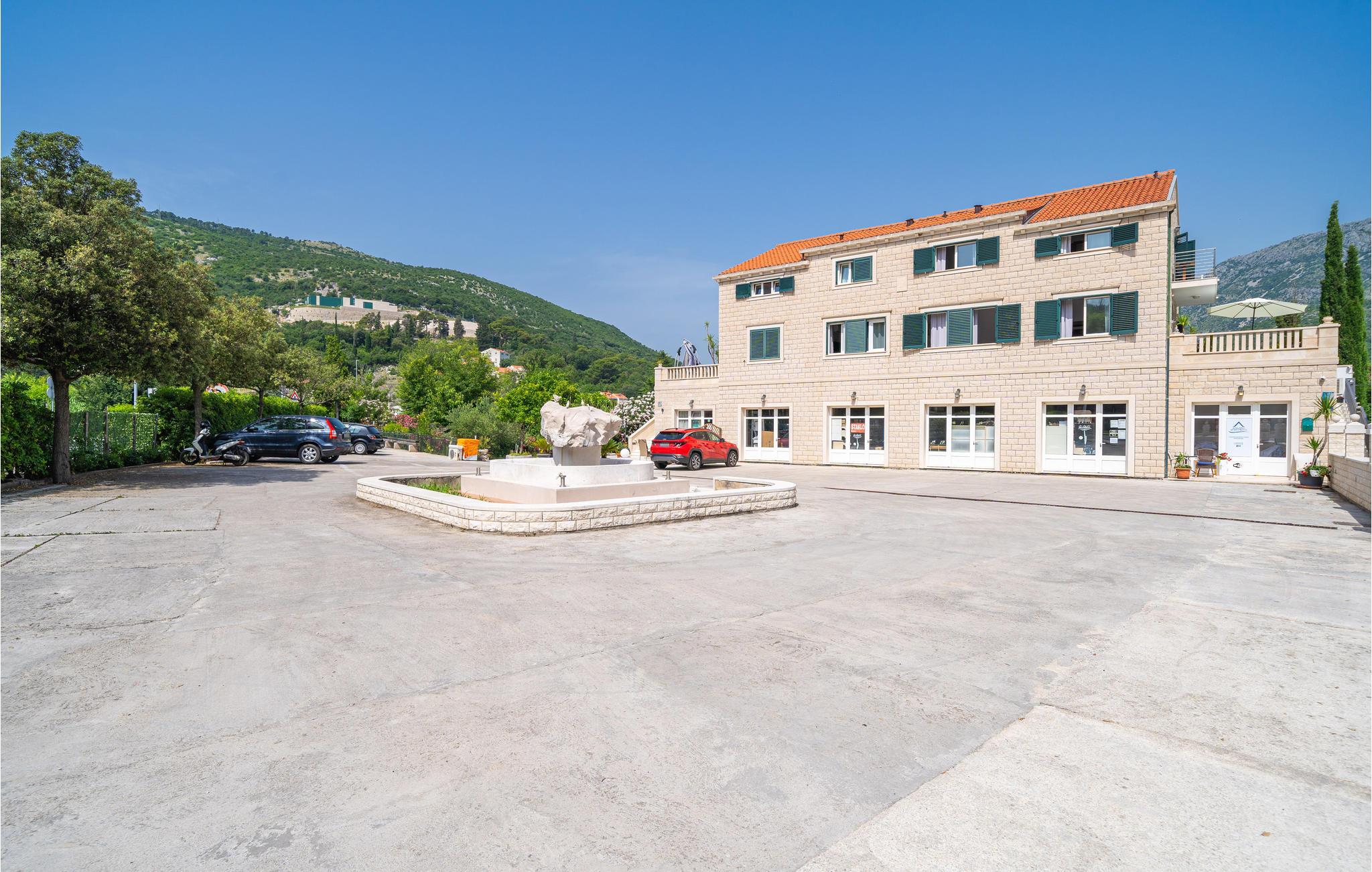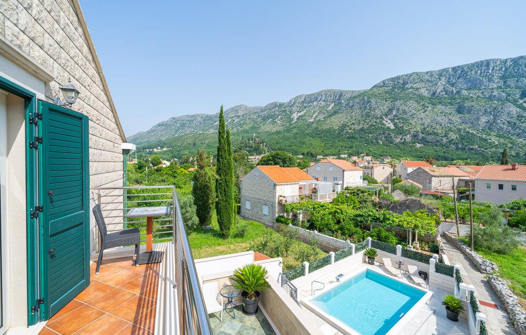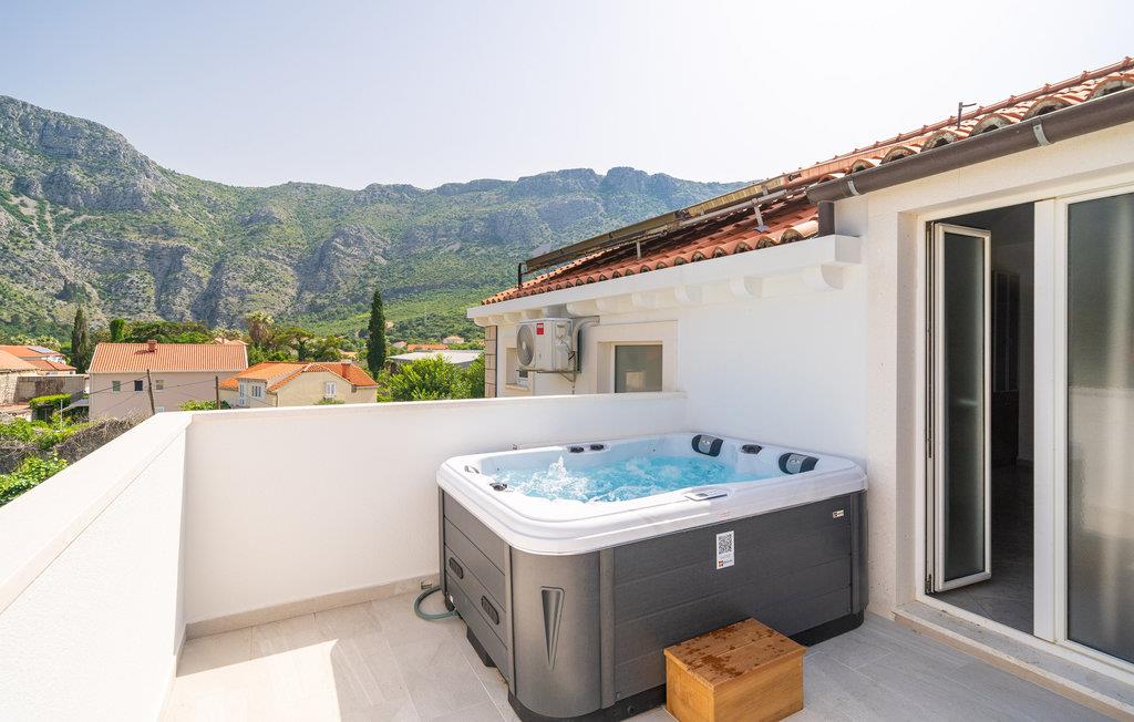 Glæd dig til en uforglemmelig ferie i denne komfortable ferielejlighed med adgang til poolen. Den indbydende ferielejlighed er det ideelle sted for en afslappende pause, hvor du kan slappe af i en fantastisk panoramisk beliggenhed nær havet. Med den lyse og hjemlige indretning sikrer lejligheden, at du kan lade hverdagen bag dig. Efter en begivenhedsrig dag kan du slå dig ned i sofaen, sætte fødderne op, her kan I sammen se en film og chatte komfortabelt i lang tid. Træd ud på altanen med din første kop kaffe og lad dig fortrylle af den vidunderlige udsigt over bjergene.Om aftenen smager et glas vin her også skønt, mens du nyder den milde sommeraften. Solbad ved poolen, som byder på en god forfriskning på varme dage, eller slap af i den udendørs jacuzzi. Kør til havet og nyd det klare vand på stenstranden. Middelalderbyen Dubrovnik fortryller med smukke strande, en verdensberømt, malerisk gammel bydel og mulighed for store oplevelser i naturen, hvad enten det er dykning, en sejltur eller en skøn vandretur. Du vil have gode minder fra din tid i dette smukke feriehus i lang tid.