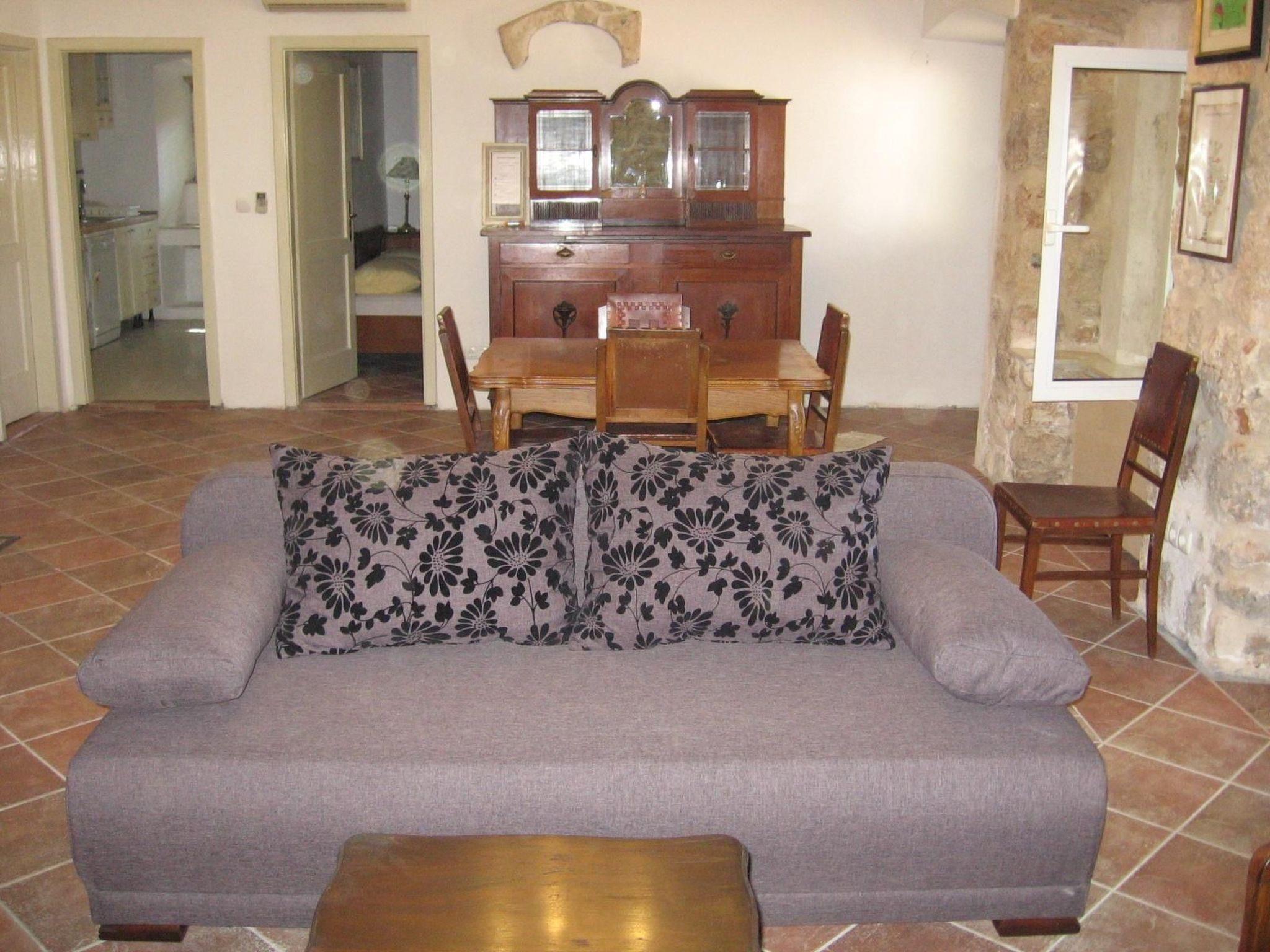 The living room has air conditioning. However, owing to the thick stone walls and the shaded location, the apartment stays pleasantly cool. Wireless Internet access is available. A cot, a highchair and a children’s car seat can be provided on request.