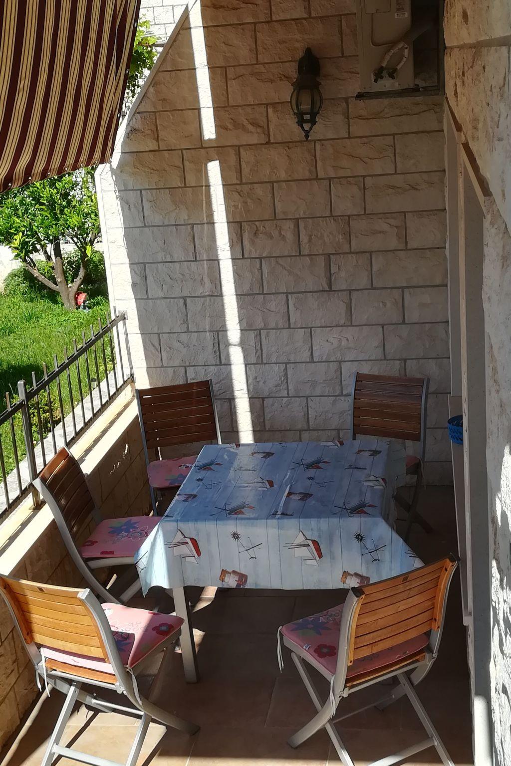 Holiday apartment with a sea view balcony and private use of the terrace in the garden, for up to 4 persons, 5 minutes from Banje beach and the Old Town