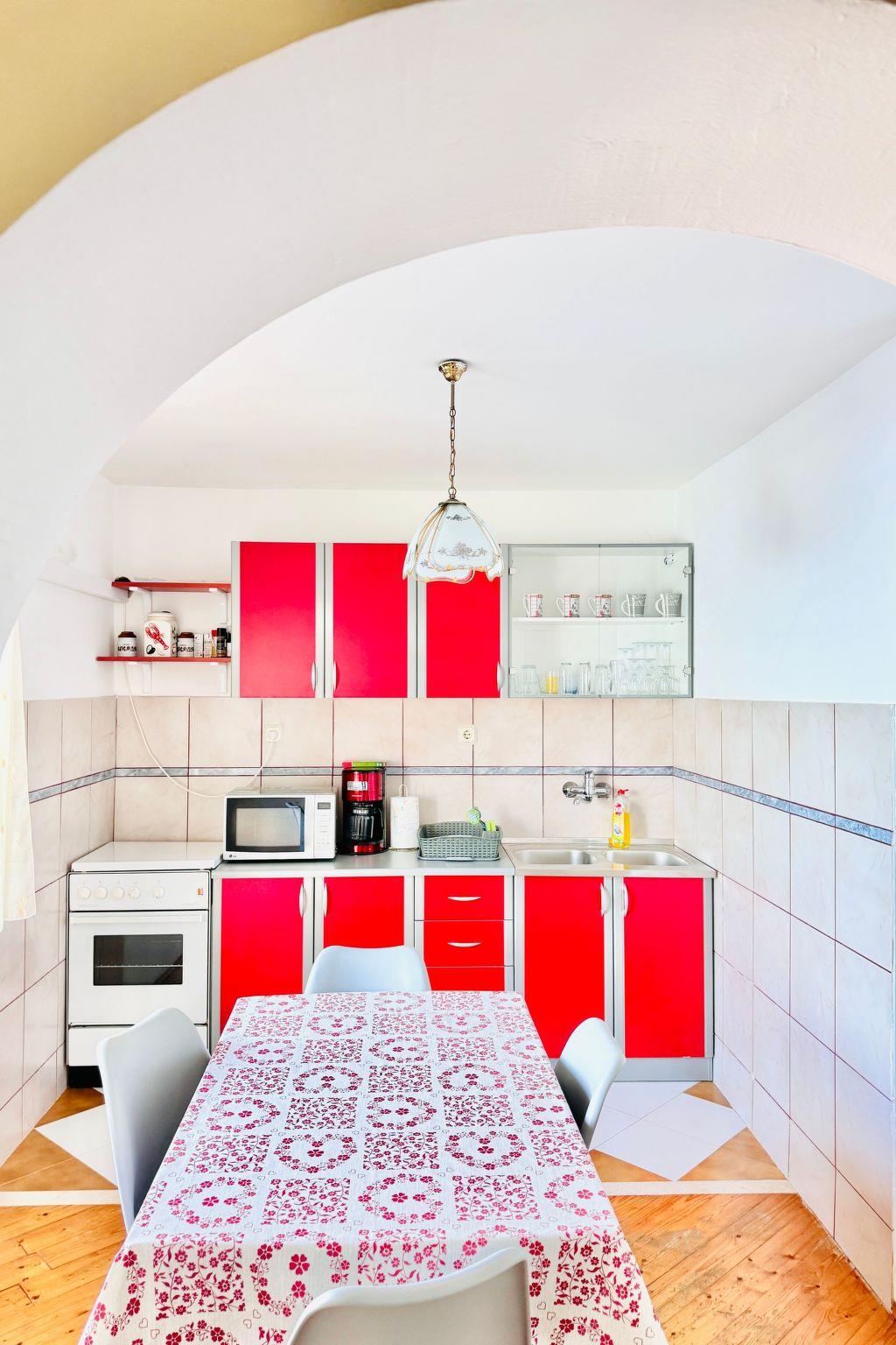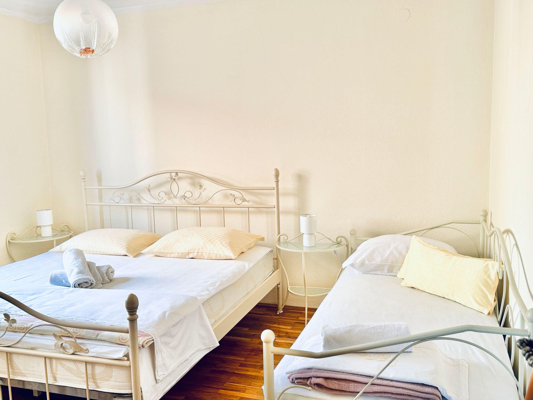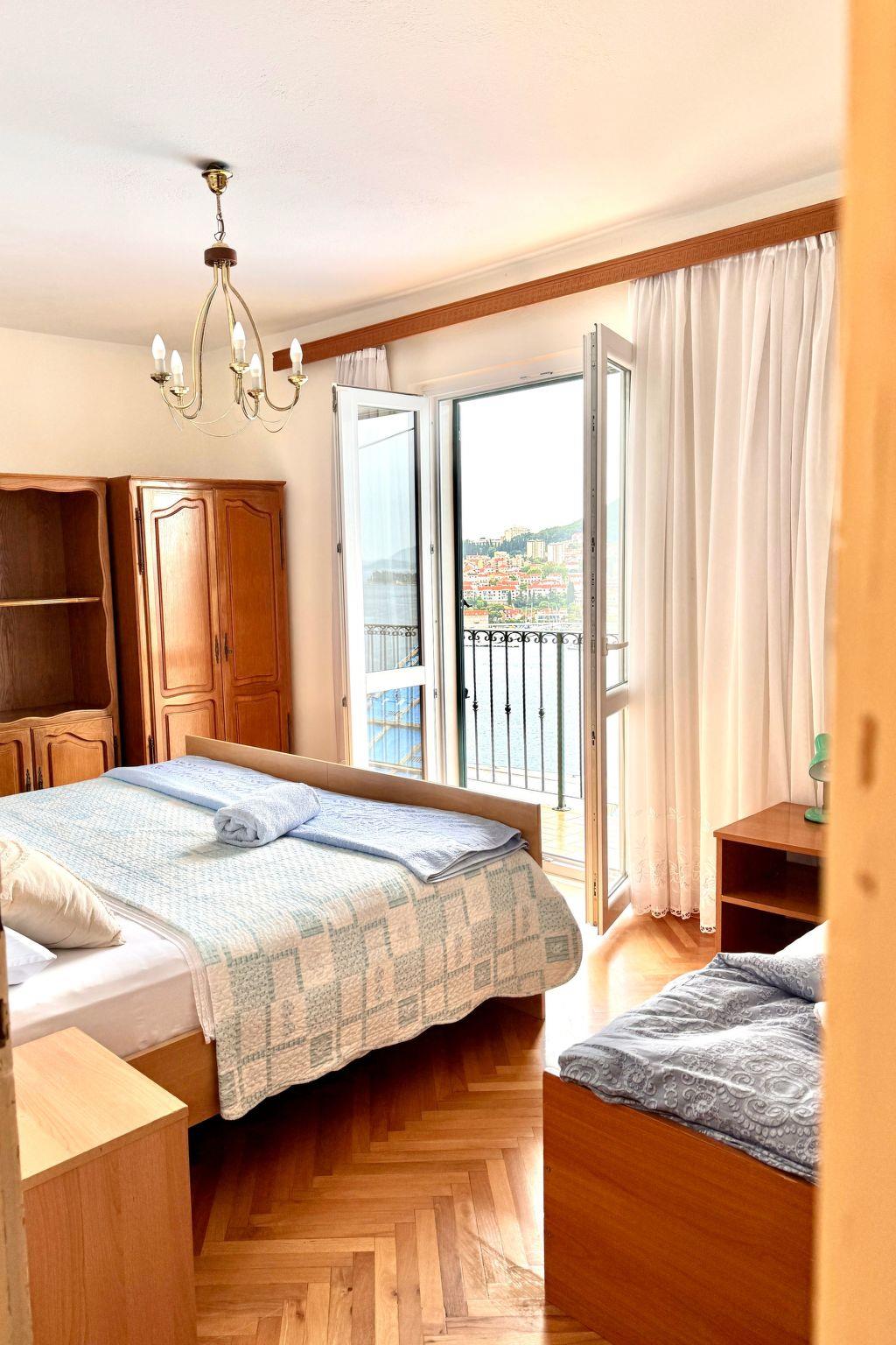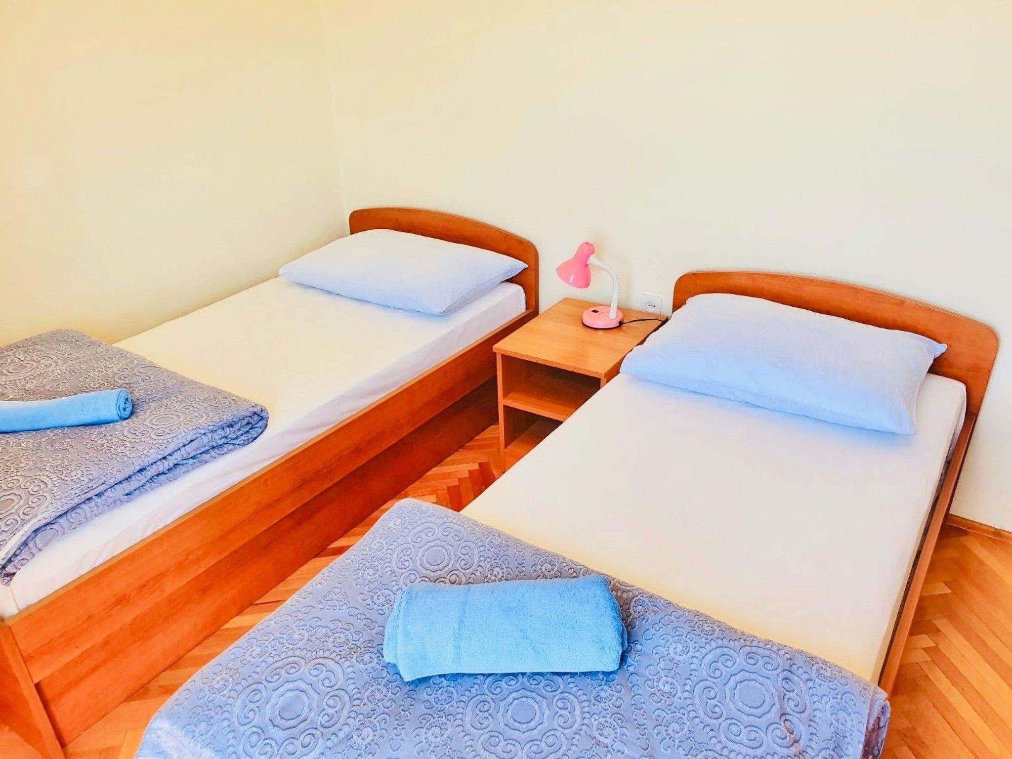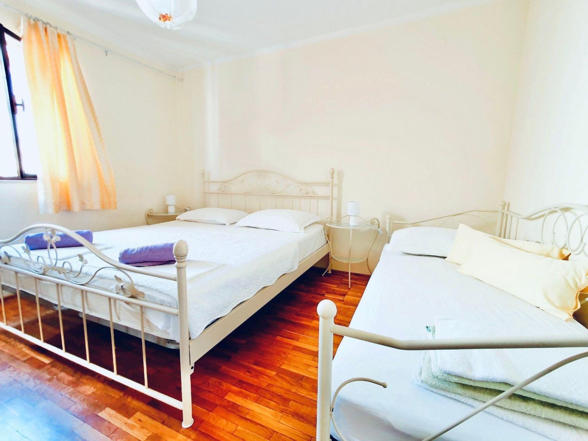 The villa contains two very spacious flats( an each flat's size is 150 square meters with the terrace or / with a very long balcony with the excellent sea-views). An each flat has an independent entry ( private entrance ). This holiday home contains spacious and comfortable five bedrooms + there are large sofa beds in spacious living rooms, fully equipped kitchens, bathrooms, 2 large stone terraces and balconies with excellent sea-views, air - conditioning, satellite TV, BBQ and many other facilities. All rooms are extremely bright and spacious as well as most of the rooms have the excellent sea- views!