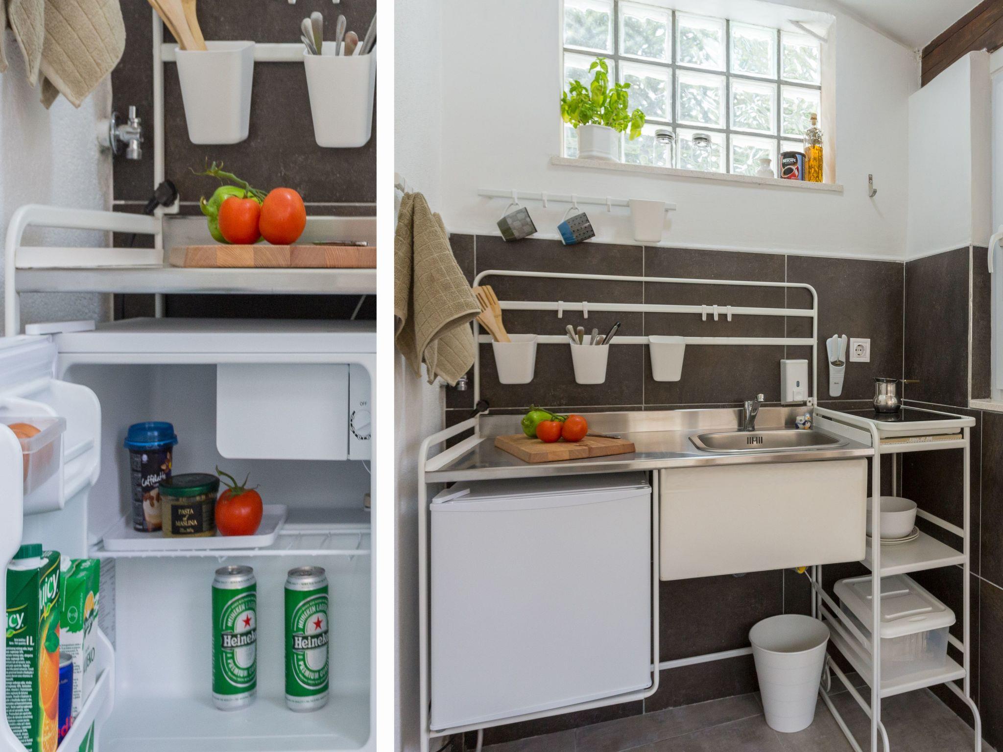 Inside this charming one-bedroom studio, you'll find a well-thought-out space that ensures your stay is comfortable and relaxing. The cottage boasts a spacious air-conditioned interior, offering a cool respite from the summer heat. Equipped with essential amenities such as a two-plate stove, an electric kettle, and a fan, the room simplifies meal preparations and ensures your comfort at all times. The inclusion of a large double bed (180x200 cm) promises restful nights, while the availability of a children's crib upon request accommodates the needs of the smallest guests.